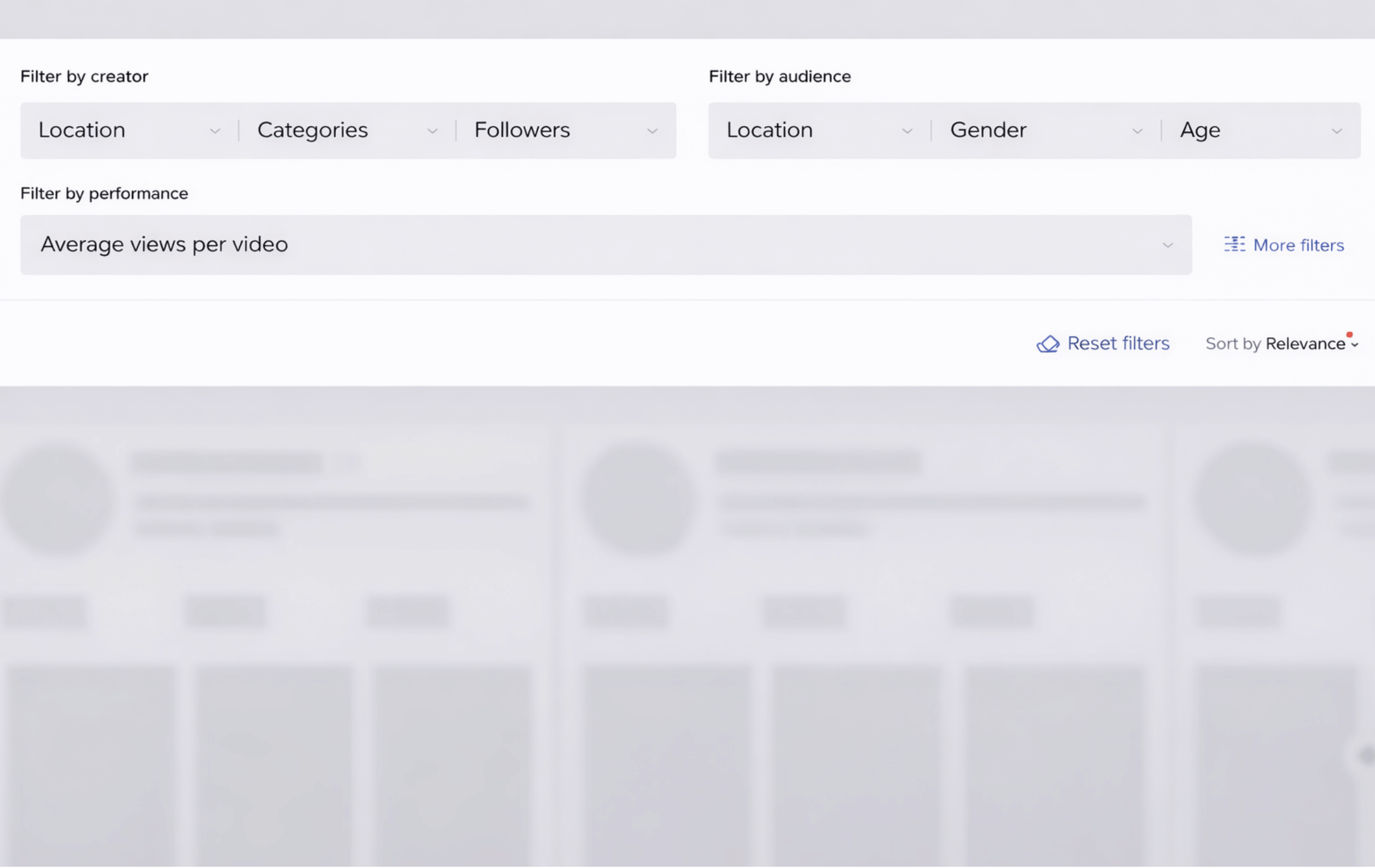 To find influencers with the right audience, use the quick “filter by audience” options or click ‘More filters’ for a more refined search.