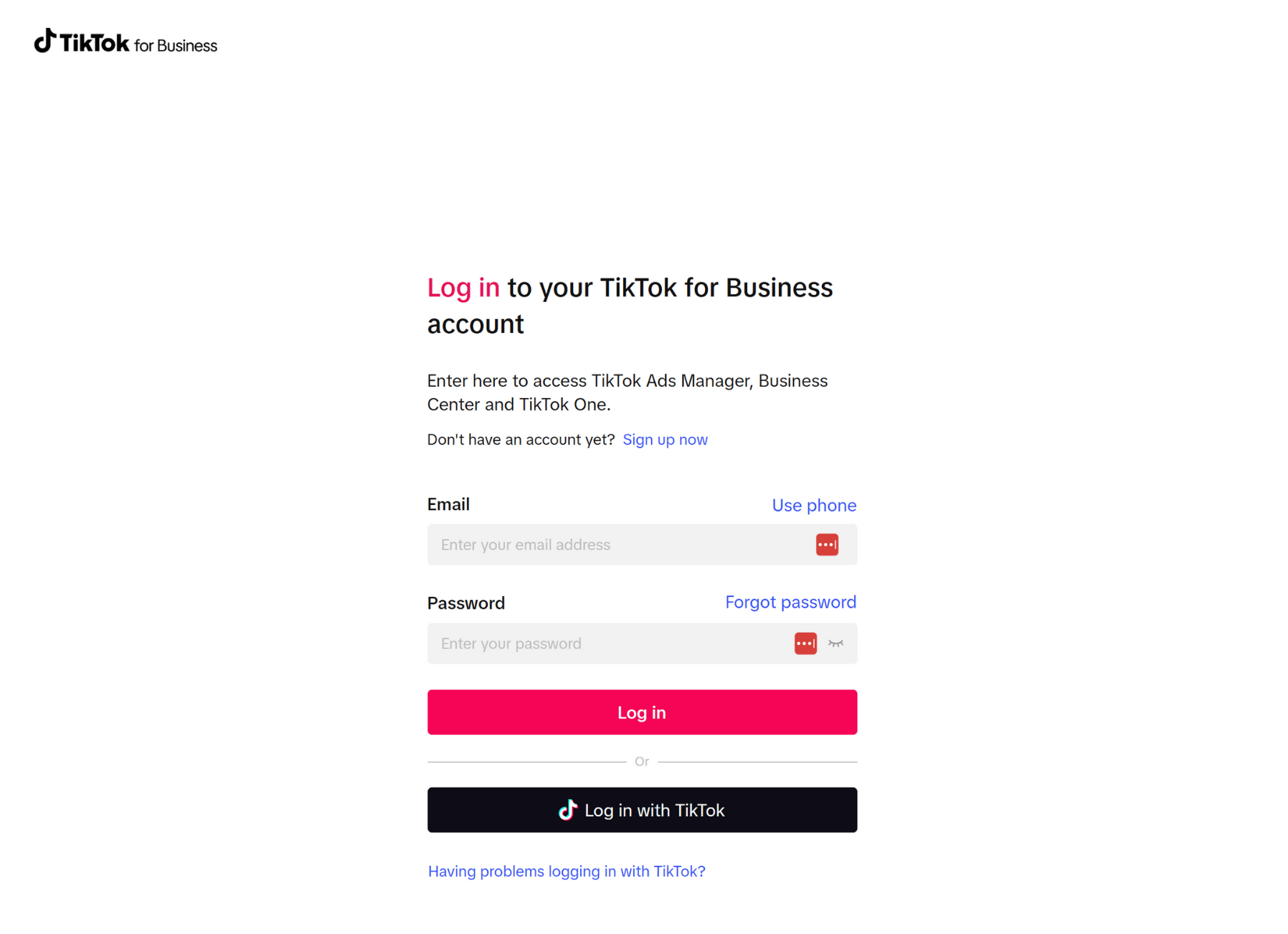 To join the Creator Marketplace as a brand, head to the platform’s official page and click ‘Create account.’ On the registration page, enter the required information and agree to TikTok’s Commercial Terms of Service. Read the TikTok for Business Privacy Policy as well before clicking ‘Create account.’