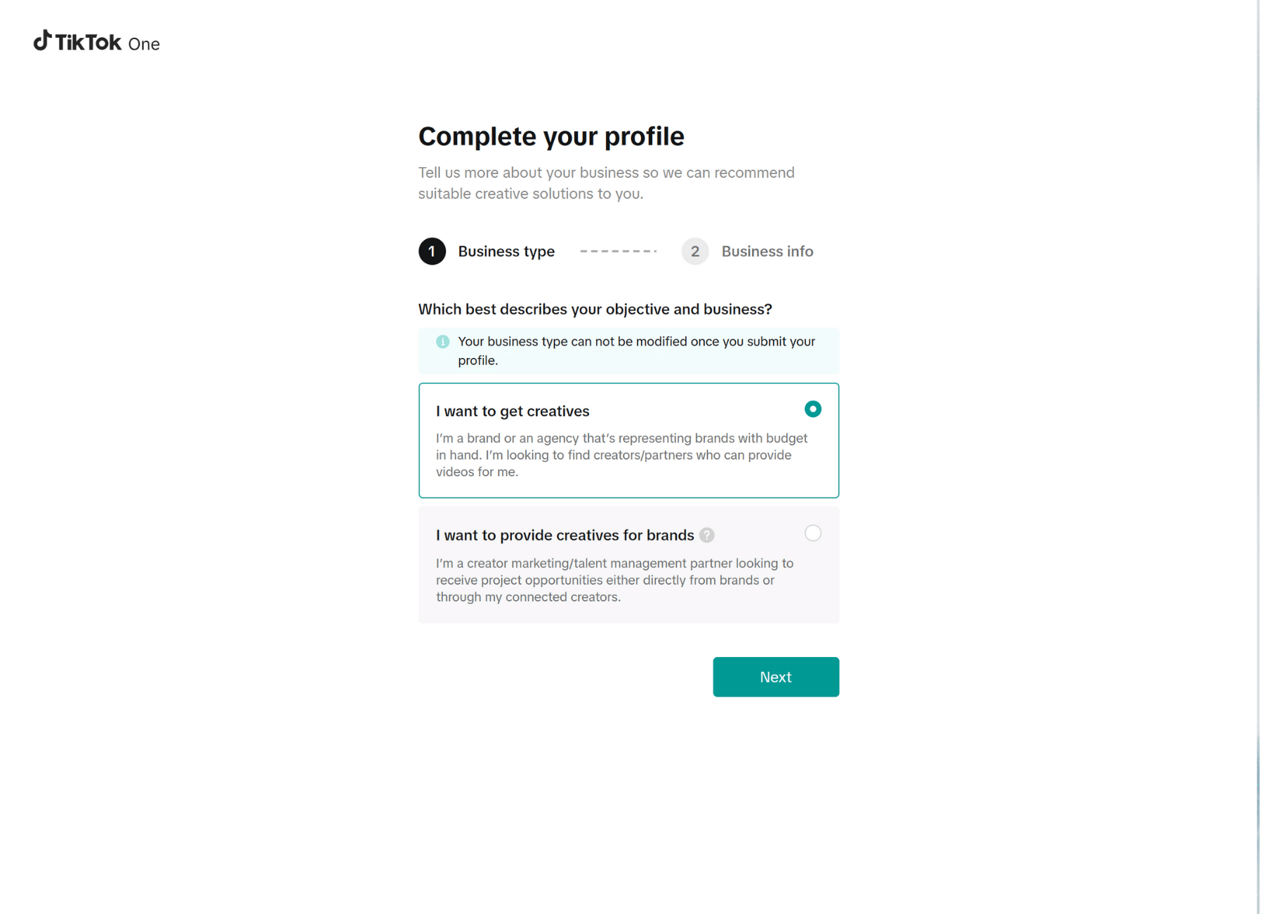 Any TikTok business account can join the Creator Marketplace as a brand partner. Aspiring creators can either be invited or apply directly, as long as they meet TikTok’s current eligibility requirements, which TikTok updates from time to time.