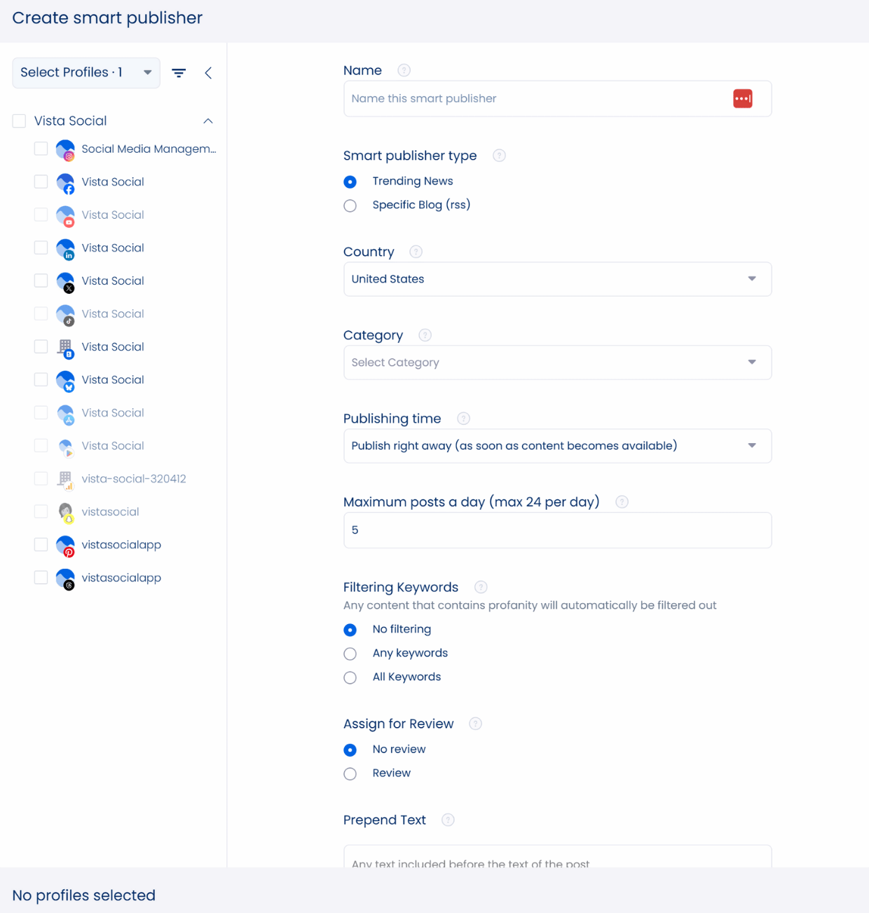 With smart publishing, all you need to do is plug in your client’s blog RSS feed, set your posting schedule preferences, and click ‘Create.’ Voila! Your content queue is all set and ready to go.