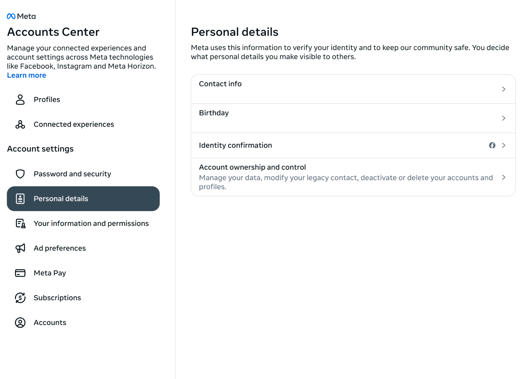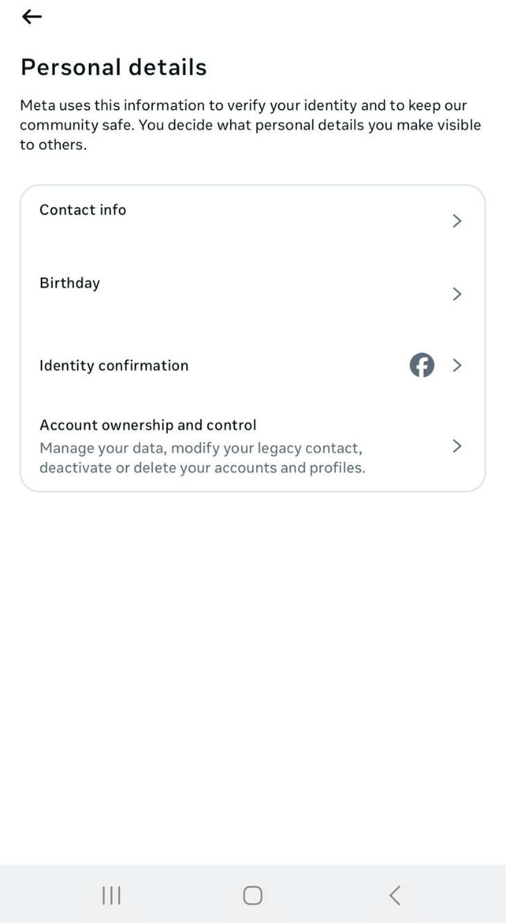 Step 3: Tap ‘Accounts Center’ to go to the Personal details page.