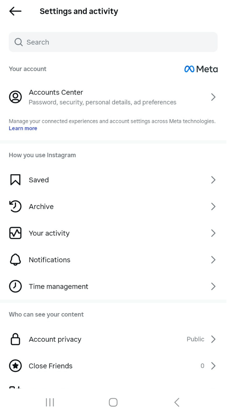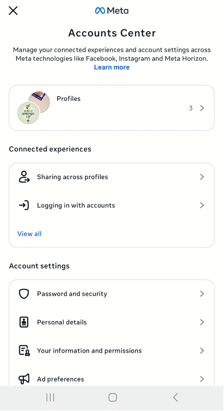 Step 2: On the “Accounts Center” page, tap ‘ Your Information and permissions.’