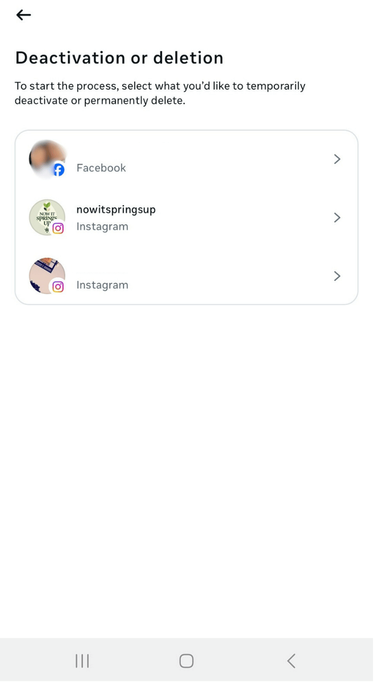 Tap Deactivation or deletion to temporarily deactivate the account.