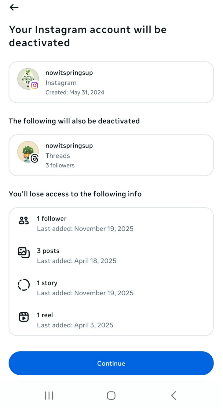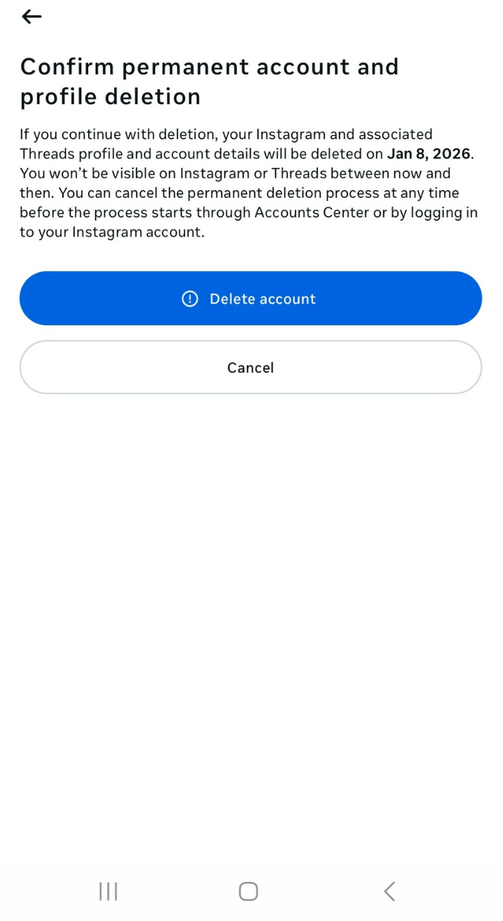 Once the 30-day recovery window passes, Instagram permanently deletes the account. There’s no Instagram appeal form or support option that can restore it after that point.Your photos, files, conversations, Reels, Stories, plus every other detail on your profile will be gone for good.