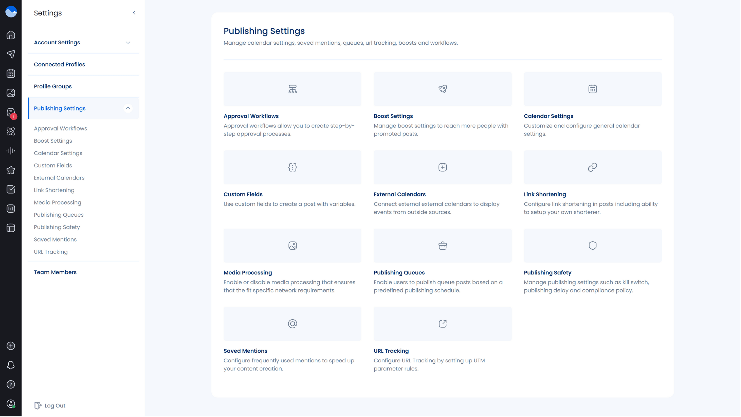 For this, go to ‘Settings’ and select ‘Publishing Settings.’ You’ll be able to configure your automated schedule under “Publishing Queues.”