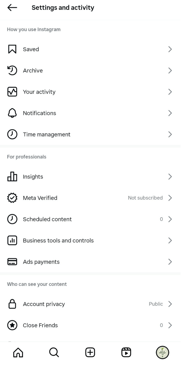 Go to your client’s profile and tap the menu icon in the upper right. Go to Settings and privacy and look for the section that lets you switch to a professional setup.