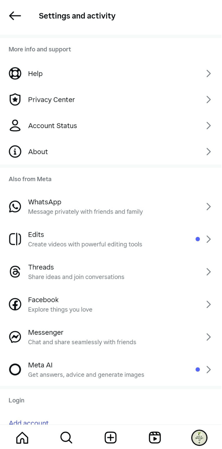 To contact Instagram’s support team, open Settings and privacy on your client’s profile page, then scroll down to Help under More Info and Support.