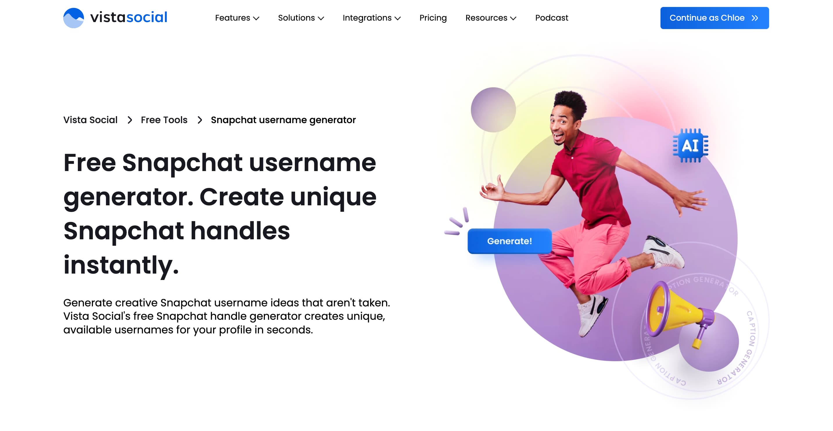 If inspiration won’t come and you need to come up with Snapchat usernames fast, use a free online username generator, just like the one we have here at Vista Social.