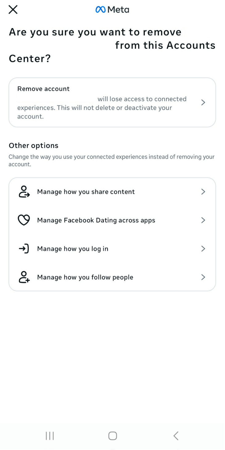 - Confirm that you want to remove the account from your client’s Instagram Accounts Center by tapping Remove account > Continue.