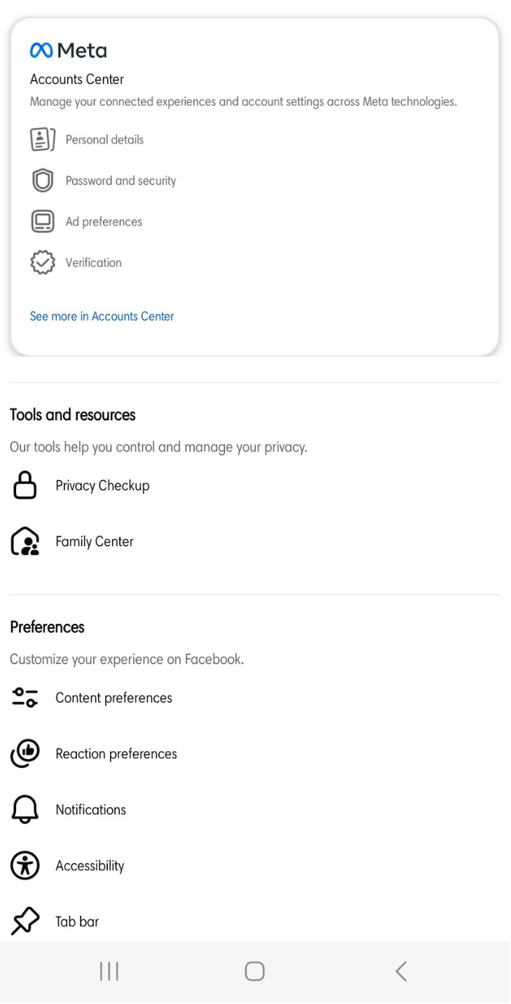 - Tap Menu > Settings and Privacy > Meta Accounts Center.