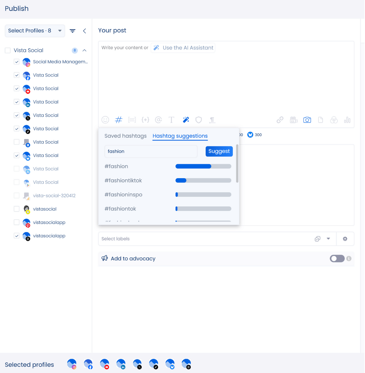 Put your Facebook and Instagram marketing campaigns on steroids. Use Vista Social to streamline and scale your marketing initiatives with the platform’s advanced, robust features.