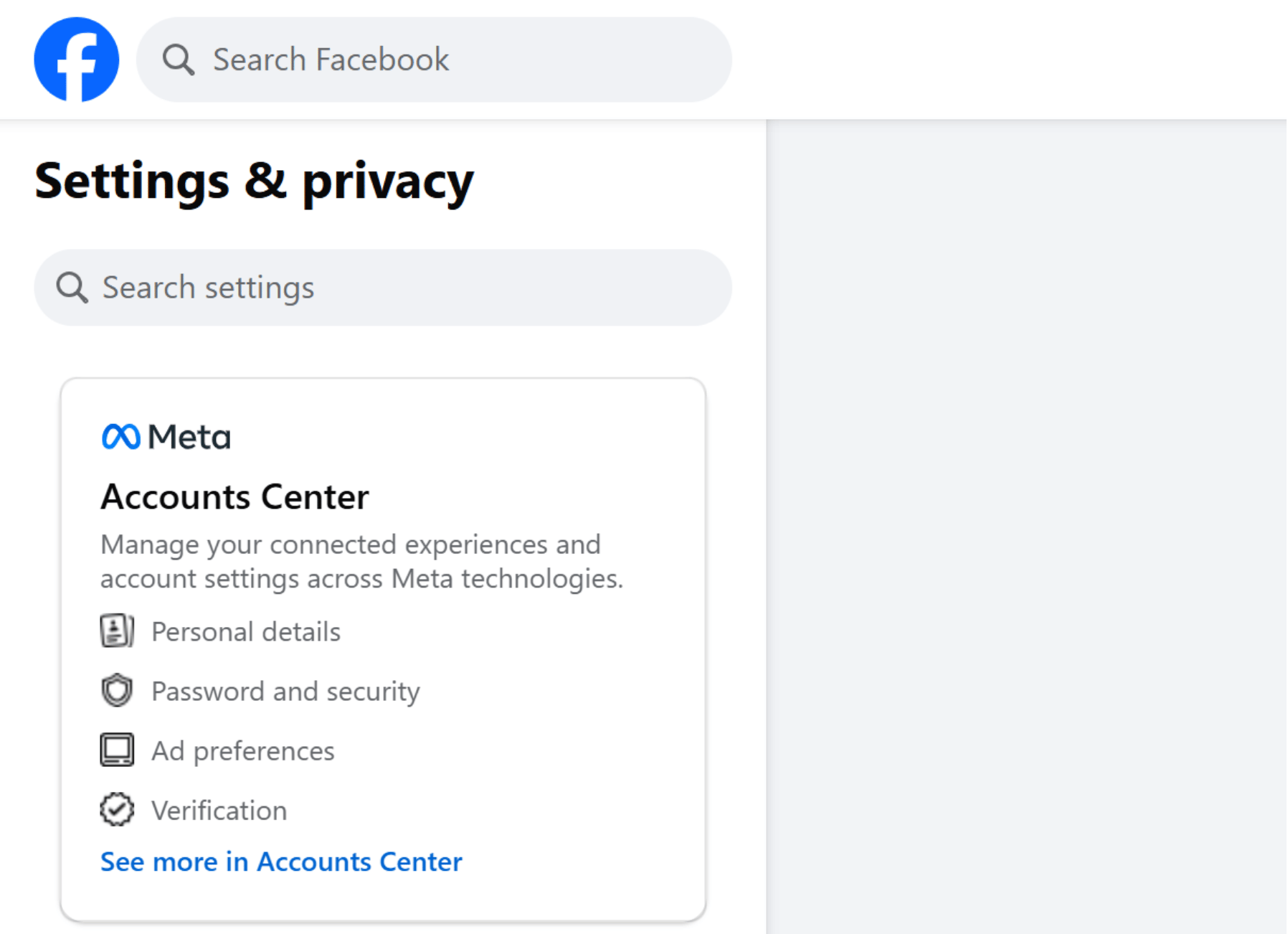 - Select See more in Accounts Center settings.