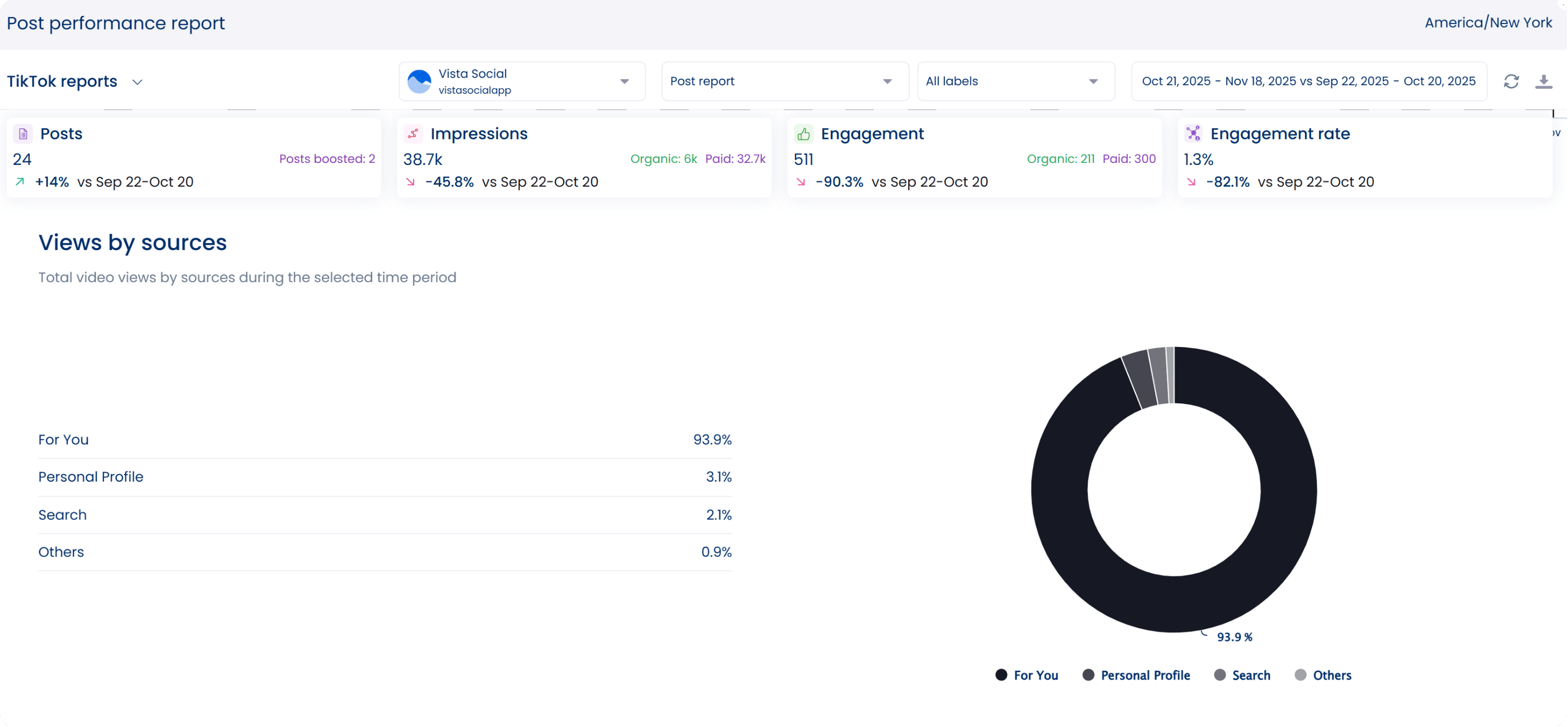 Vista Social’s social media analytics feature can track and analyze your TikTok performance based on key metrics. This helps you gain strategic audience engagement insights.