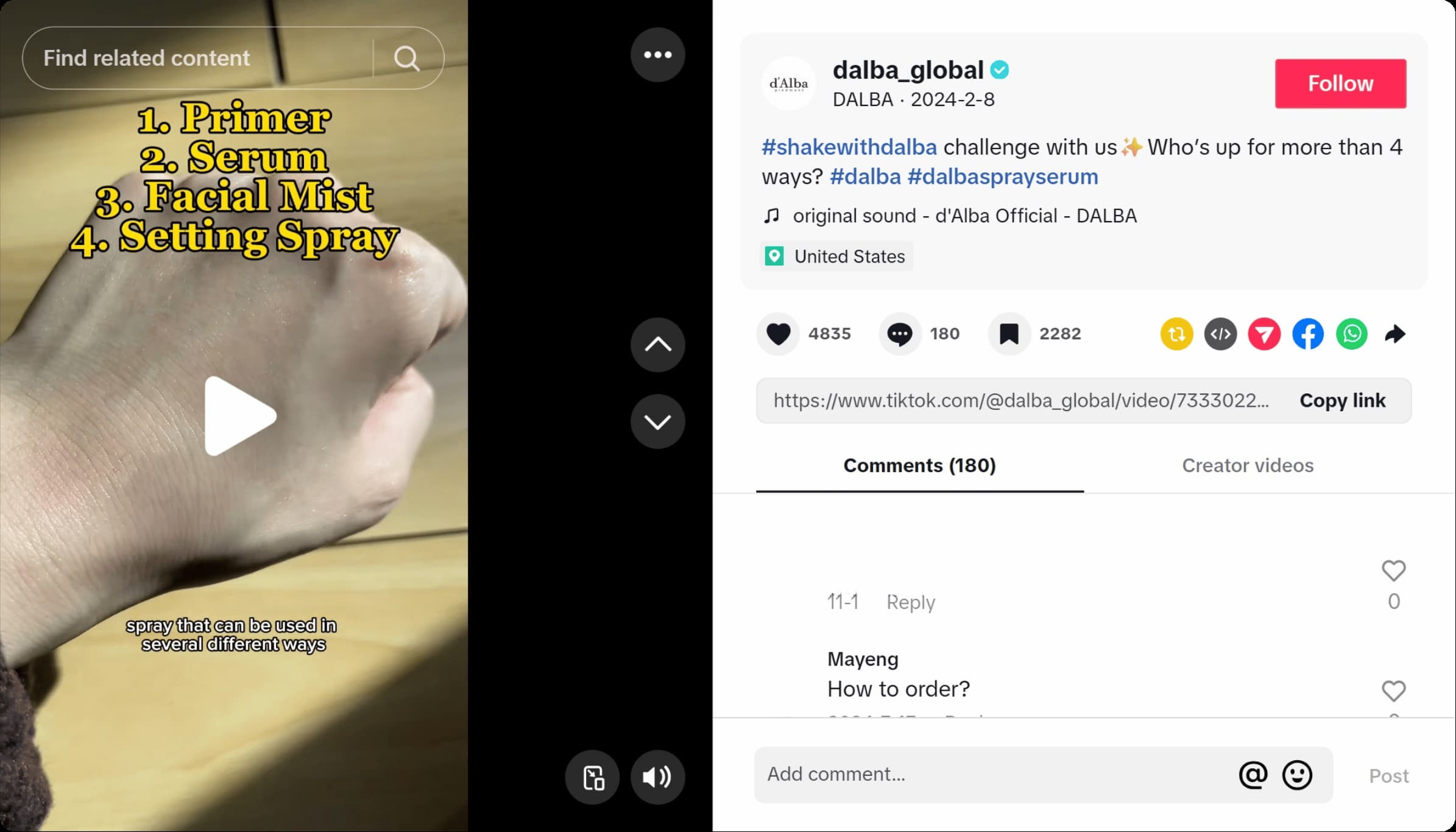 The #shakewithdalba video challenge below showcases the four ways to use the brand’s spray serum.