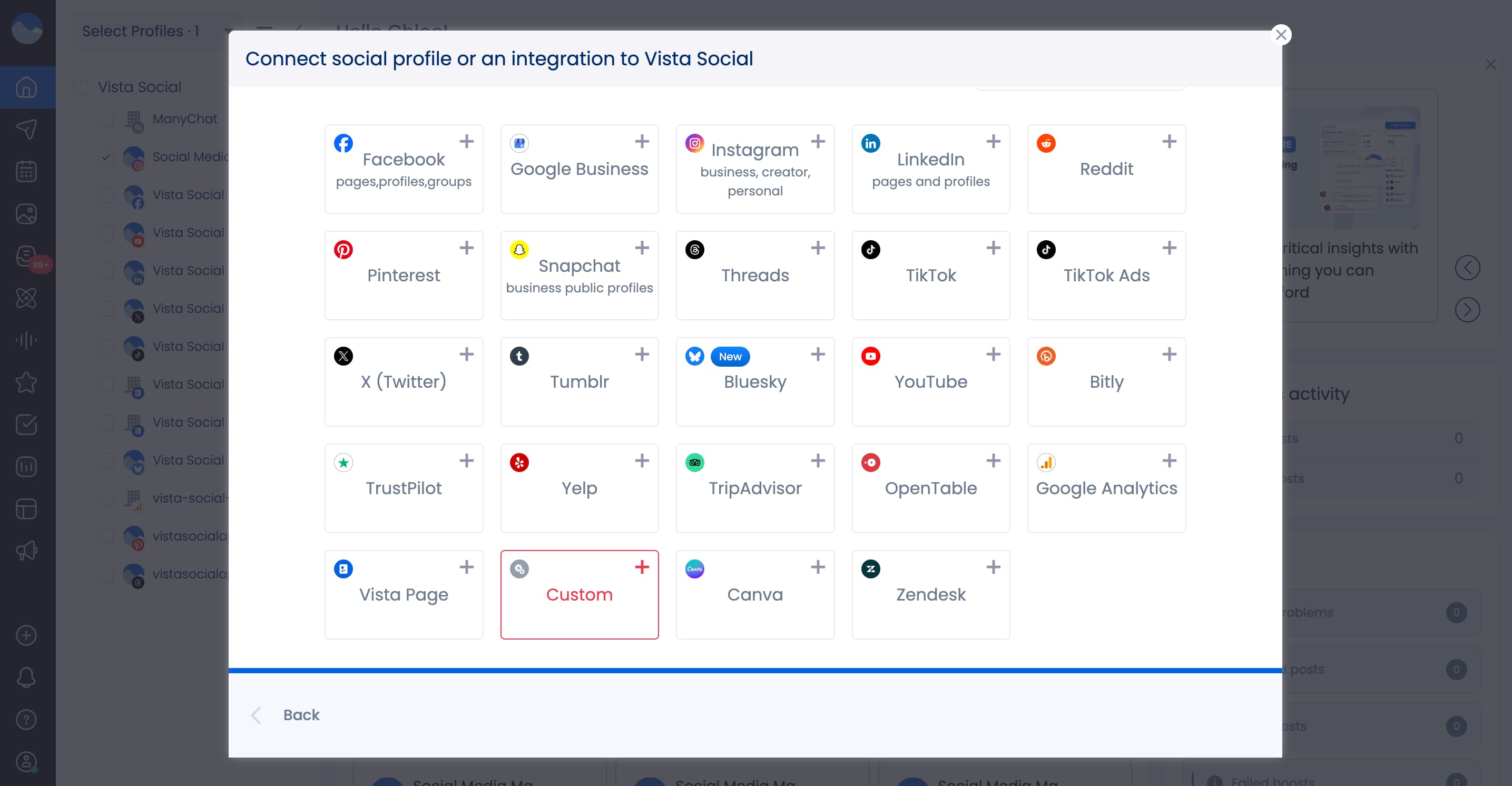 First, you’ll need to set up your Instagram broadcast channel as a “custom channel” in your Vista dashboard.