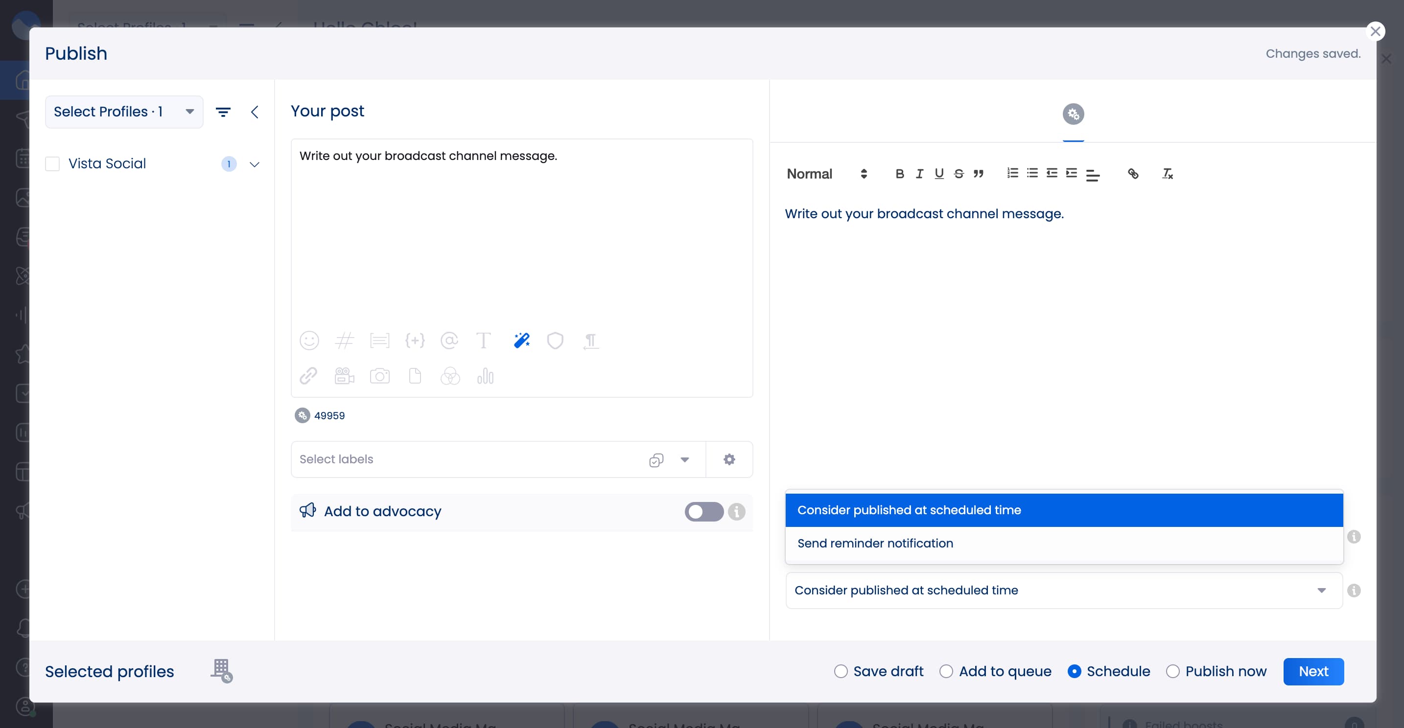 Using Vista Social to plan out your broadcast channel messages can help you fill up your content calendar and make sure you keep your audience engaged.