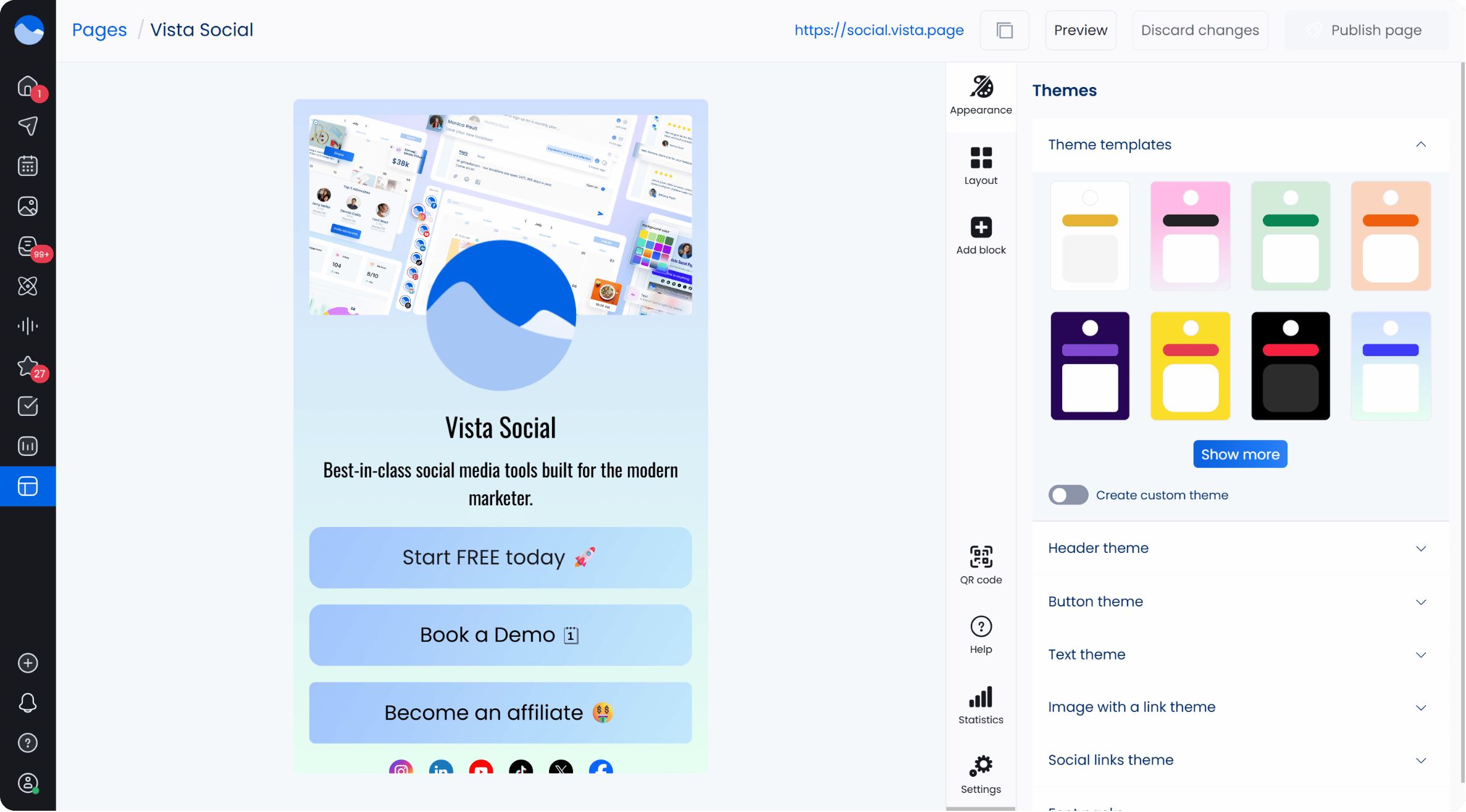 Your best bet is to include a “link in bio” CTA and create a customized link hub for everything you want to promote. With a Vista Page, you can easily set up an aesthetic link hub for your clients.
