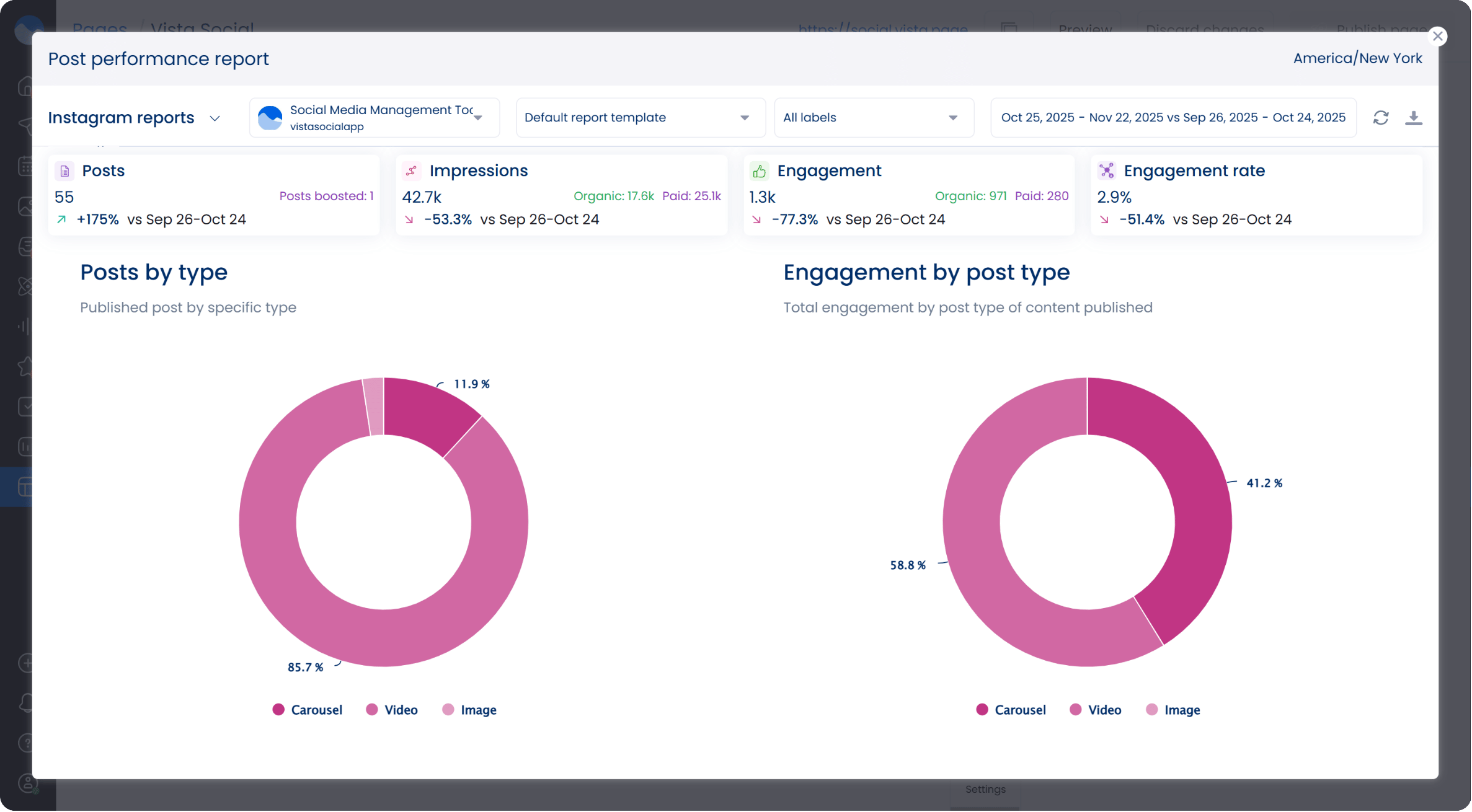 Vista Social can accelerate this process with advanced publishing and optimization tools. The platform can also generate performance reports to help you analyze and fine-tune your Reels.