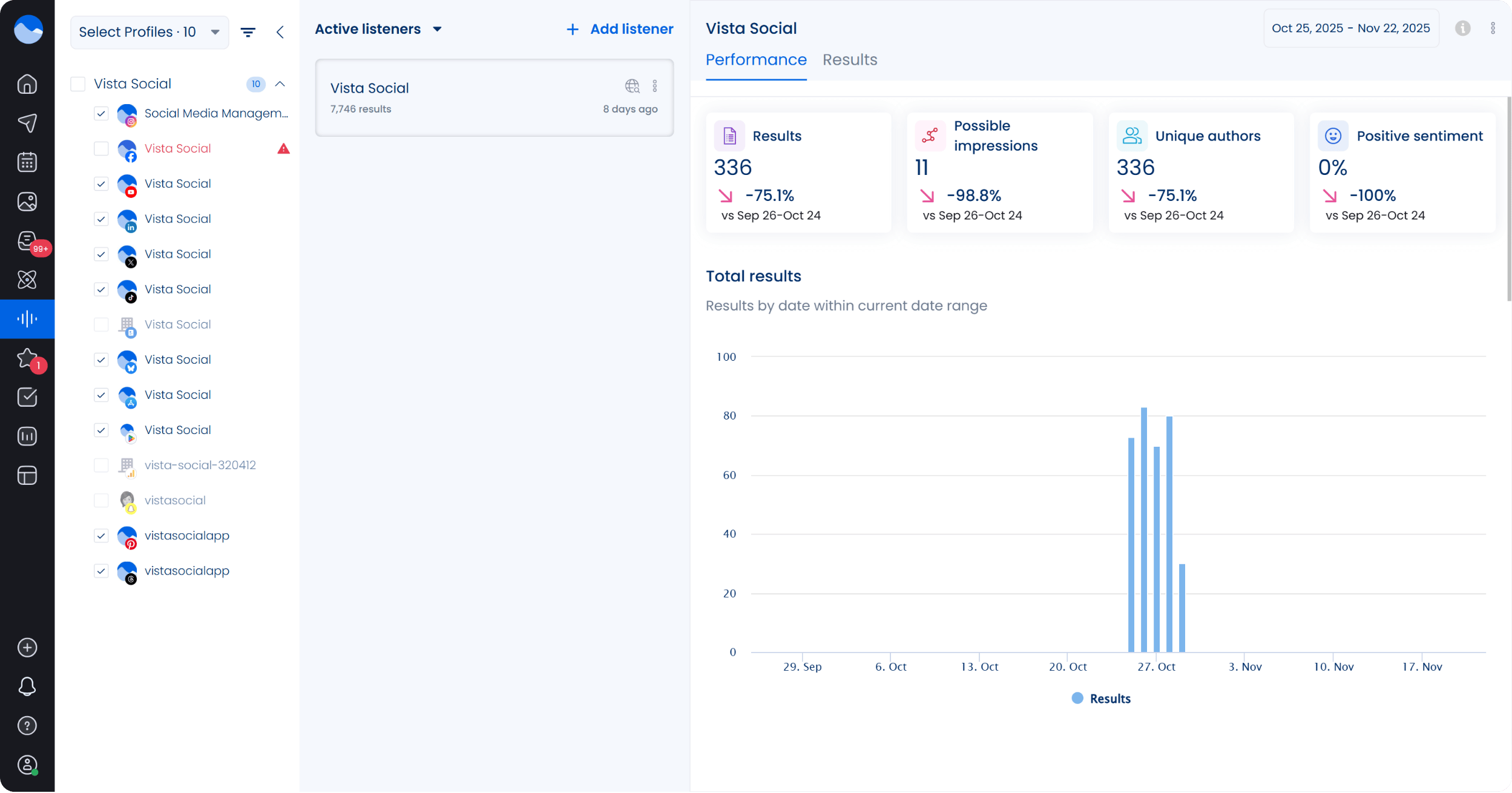 You can also use the Social Inbox feature to manage conversations across all profiles. Plus, you can create a social media listener to track down conversations based on user sentiments.