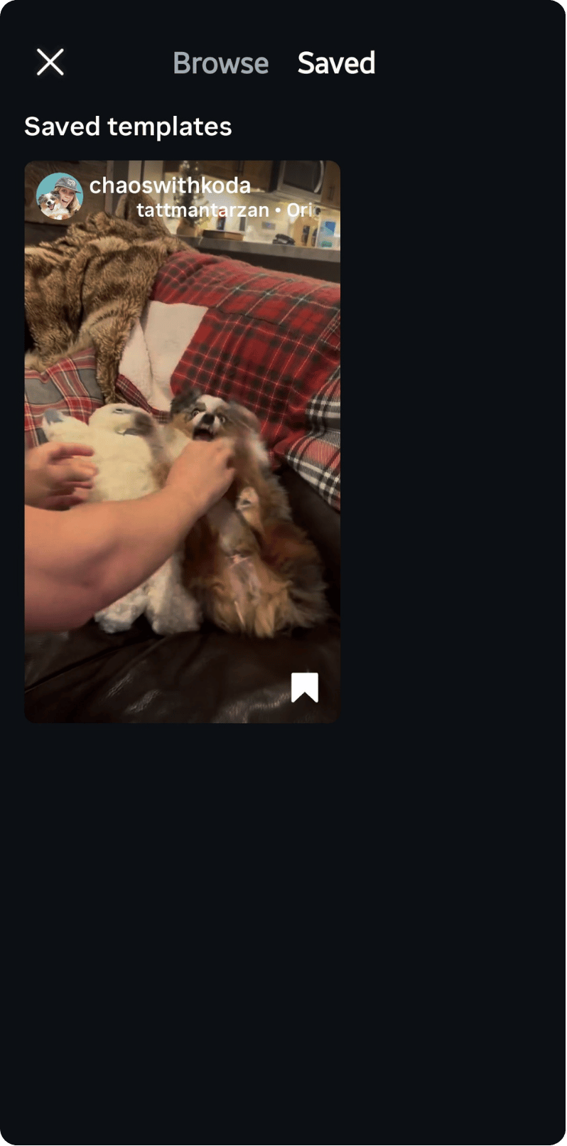 Tip: if you find a template you’d like to use later, tap the ‘Save’ button (bookmark icon) in the bottom-right corner. This will make them available in the ‘Saved’ tab of the Instagram Reel editor.