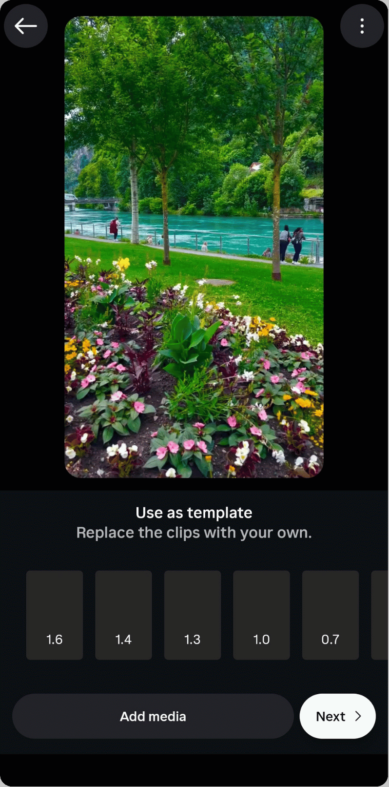 Remember that if you’re running a business or creator account, it’s best to replace every single clip in the template to ensure they match your content or brand.