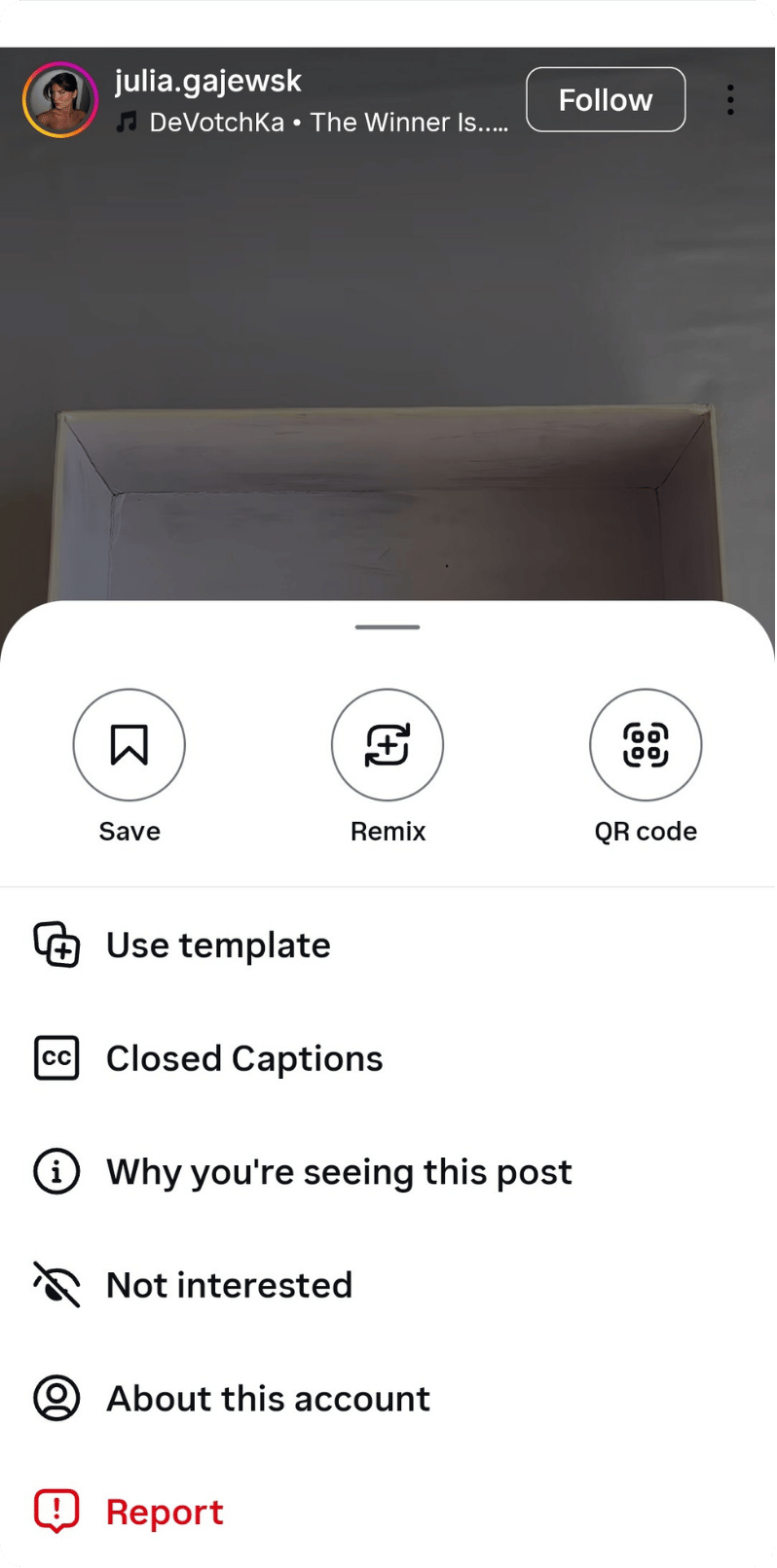 Another way to find Instagram Reels templates is through the ‘Use template’ button. Open the Reel with the template you want to use and tap the three dots icon. Then, select the Use template option and edit your Reel accordingly.