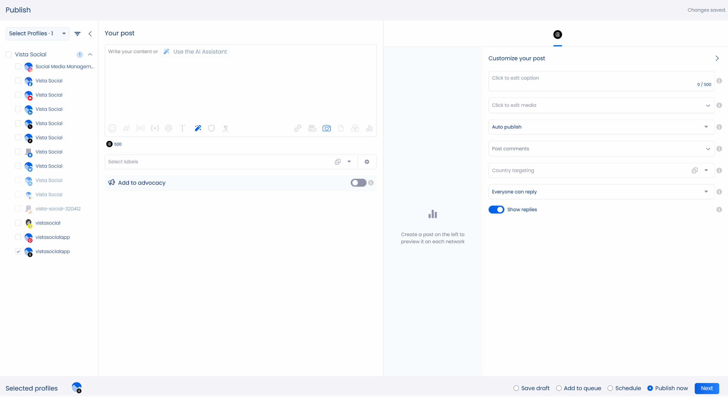 You can streamline your Threads and Instagram content planning with Vista Social, especially now that both platforms play a bigger role in daily conversations. If you want an easier way to handle everything across Threads and Instagram, Vista Social gives you a setup that keeps your process simple.