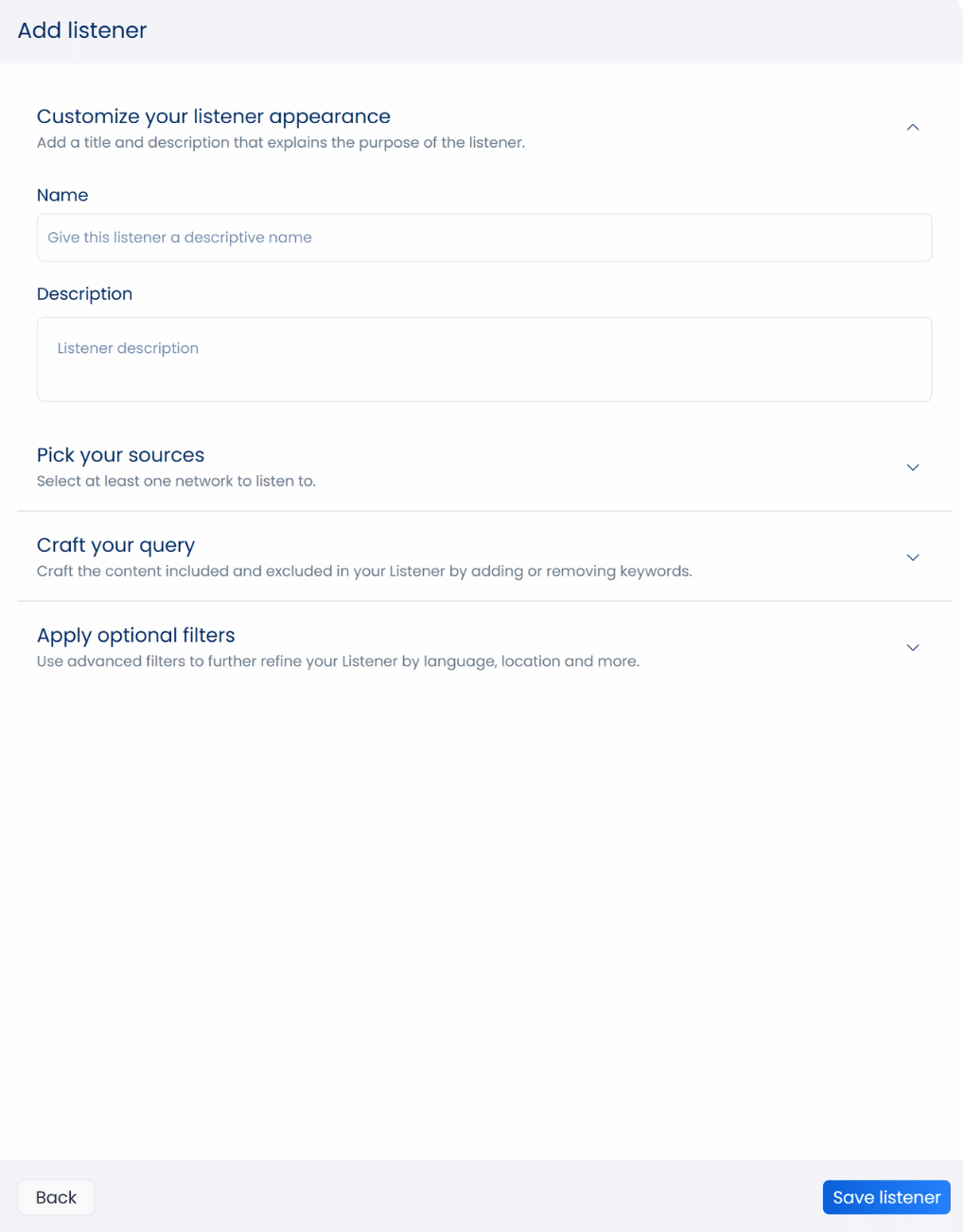 You’ll get a full view of every Listener you’ve set up, their activity status, and how many posts include your chosen keywords. Just click a Listener to see those posts directly.