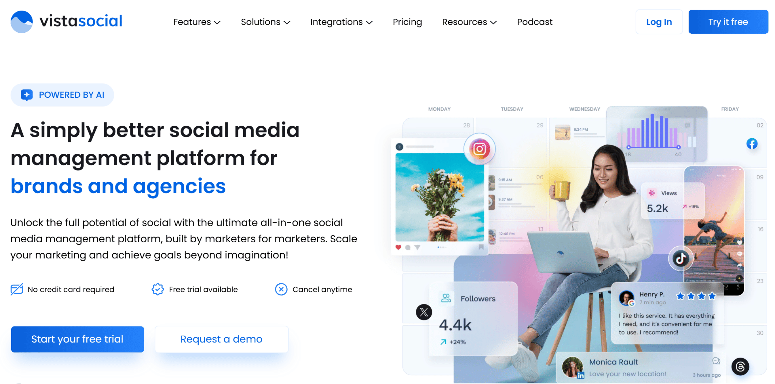 Vista Social is a social media management platform that simplifies and streamlines key tasks, from post scheduling to social media analytics and reporting.