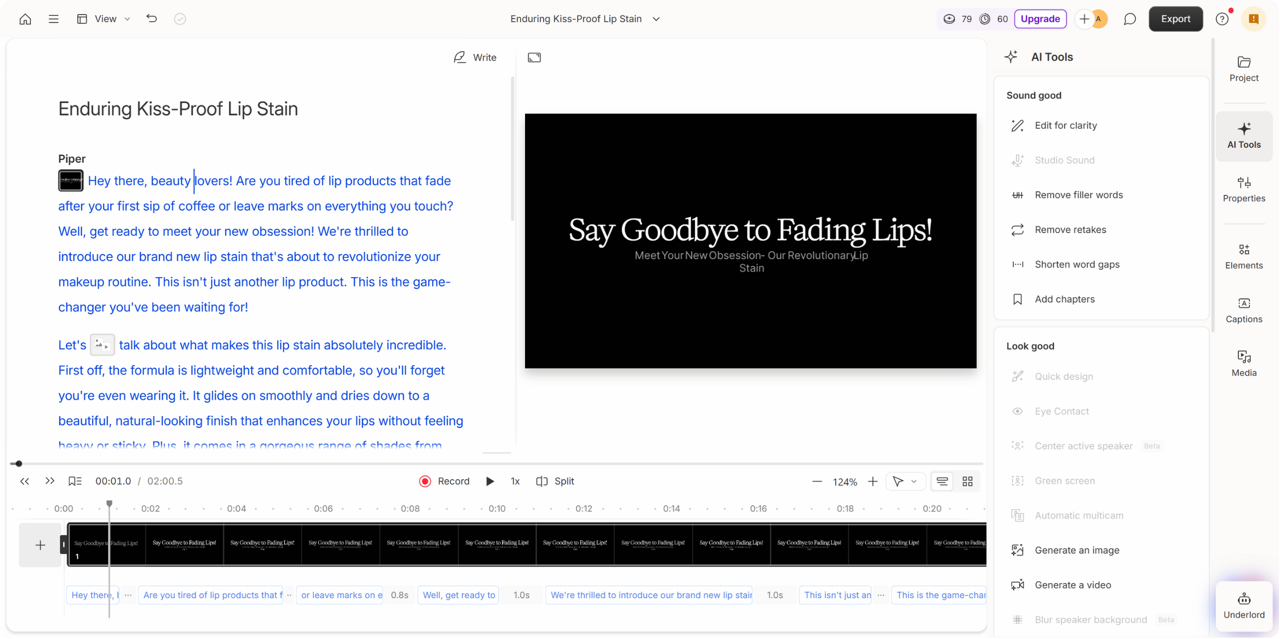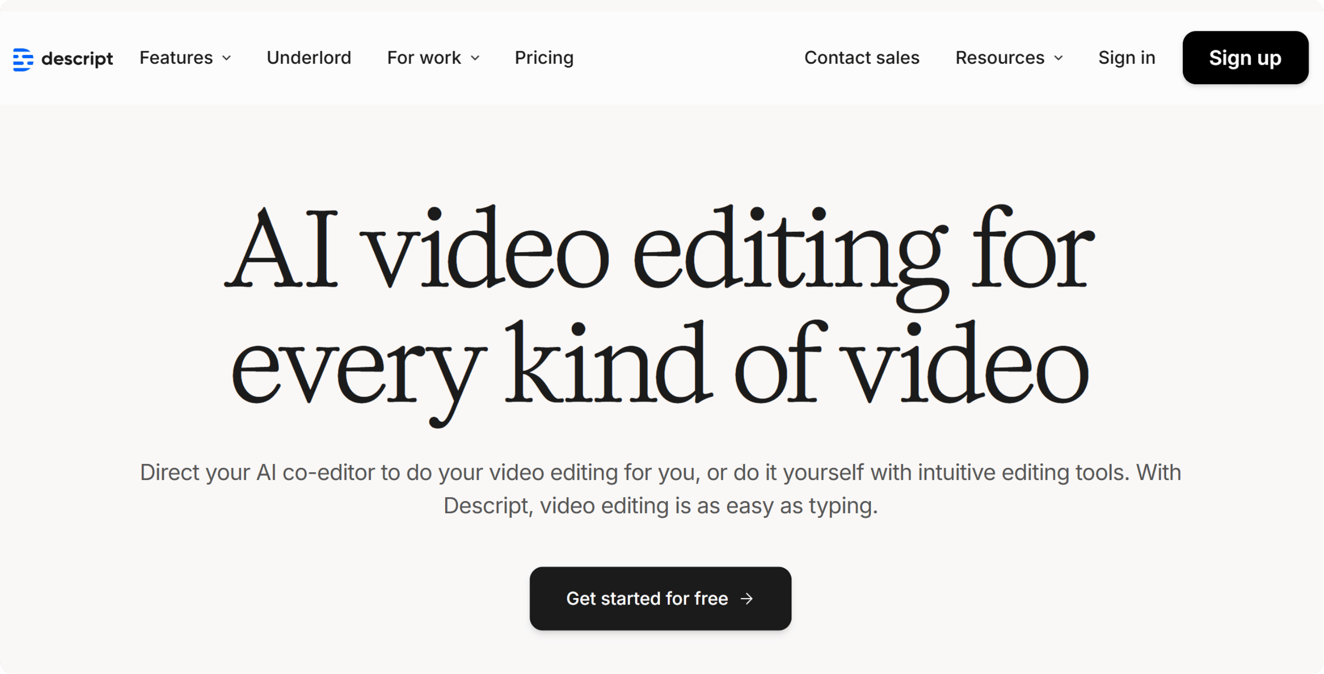 Best for: Video and audio creators or social media teams who want text-based editing and AI-powered voice cloning all in one tool.