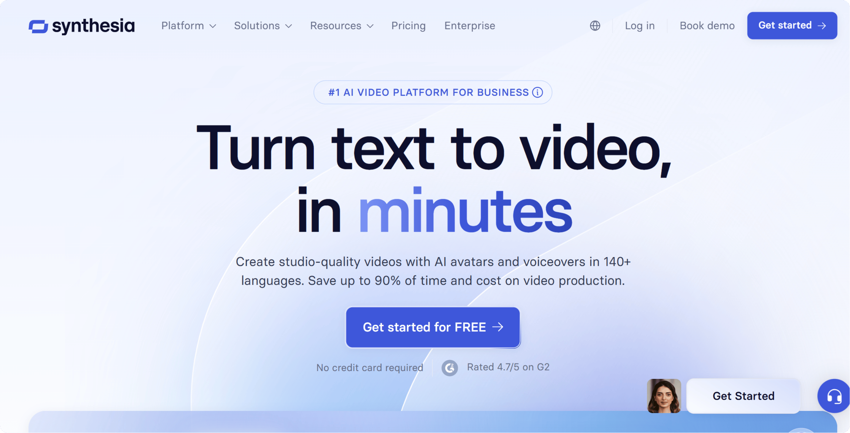 Synthesia’s paid plans start at $18/month, with a free plan that offers a few minutes of video creation per month.