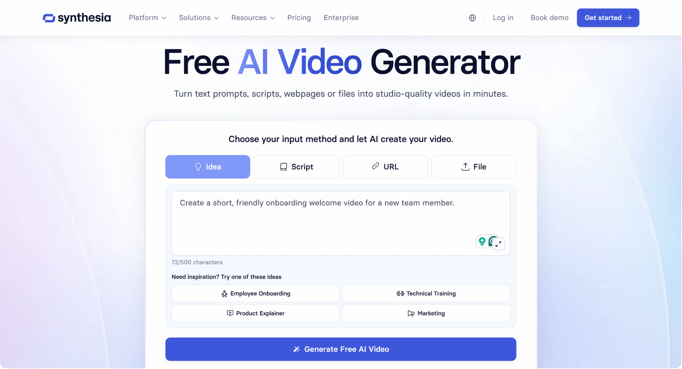 - Let’s you generate scripts from links and documents, including AI-generated ideas