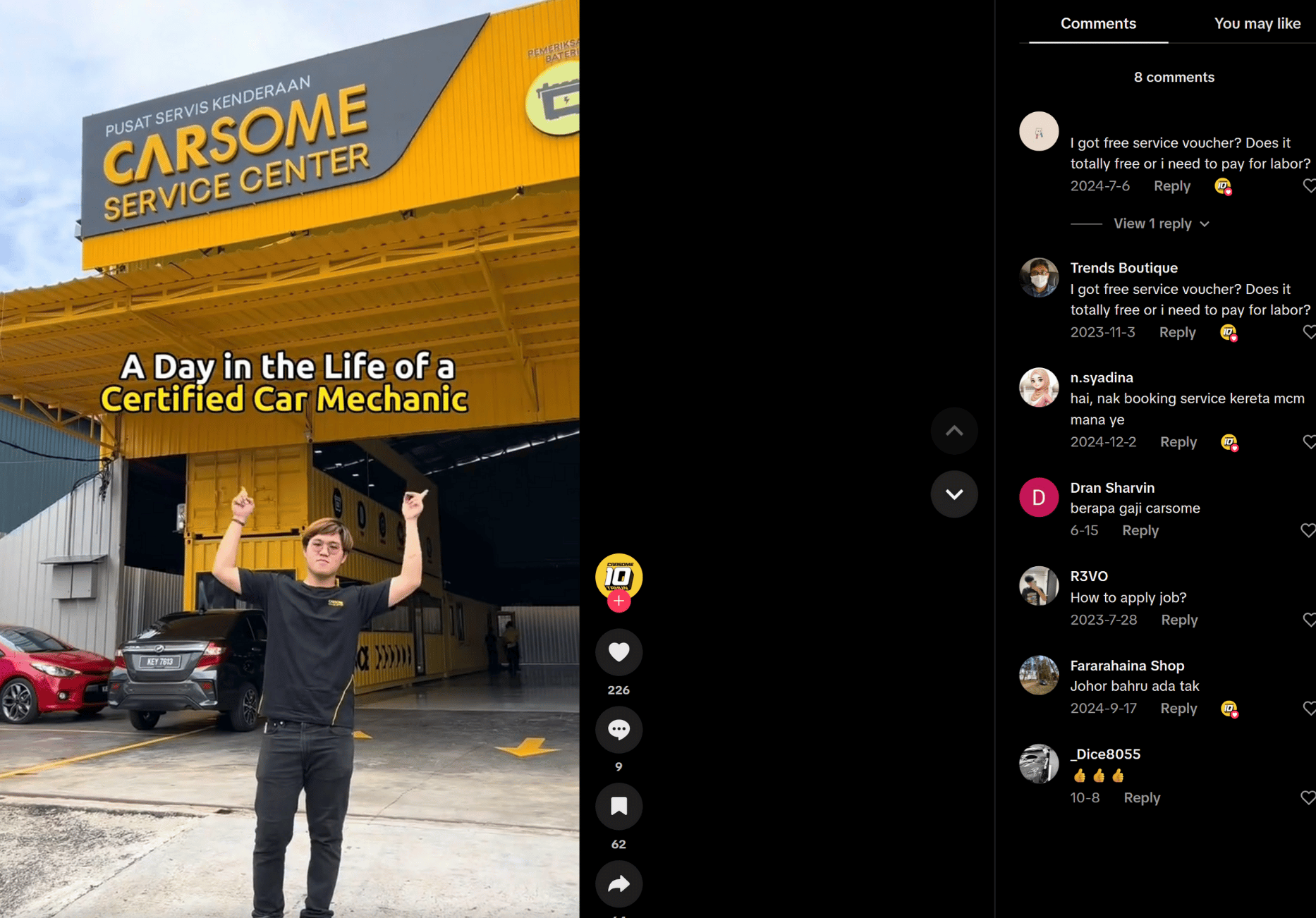 - TikTok clips following a day in the life of an auto-mechanic with fun captions or quick commentary