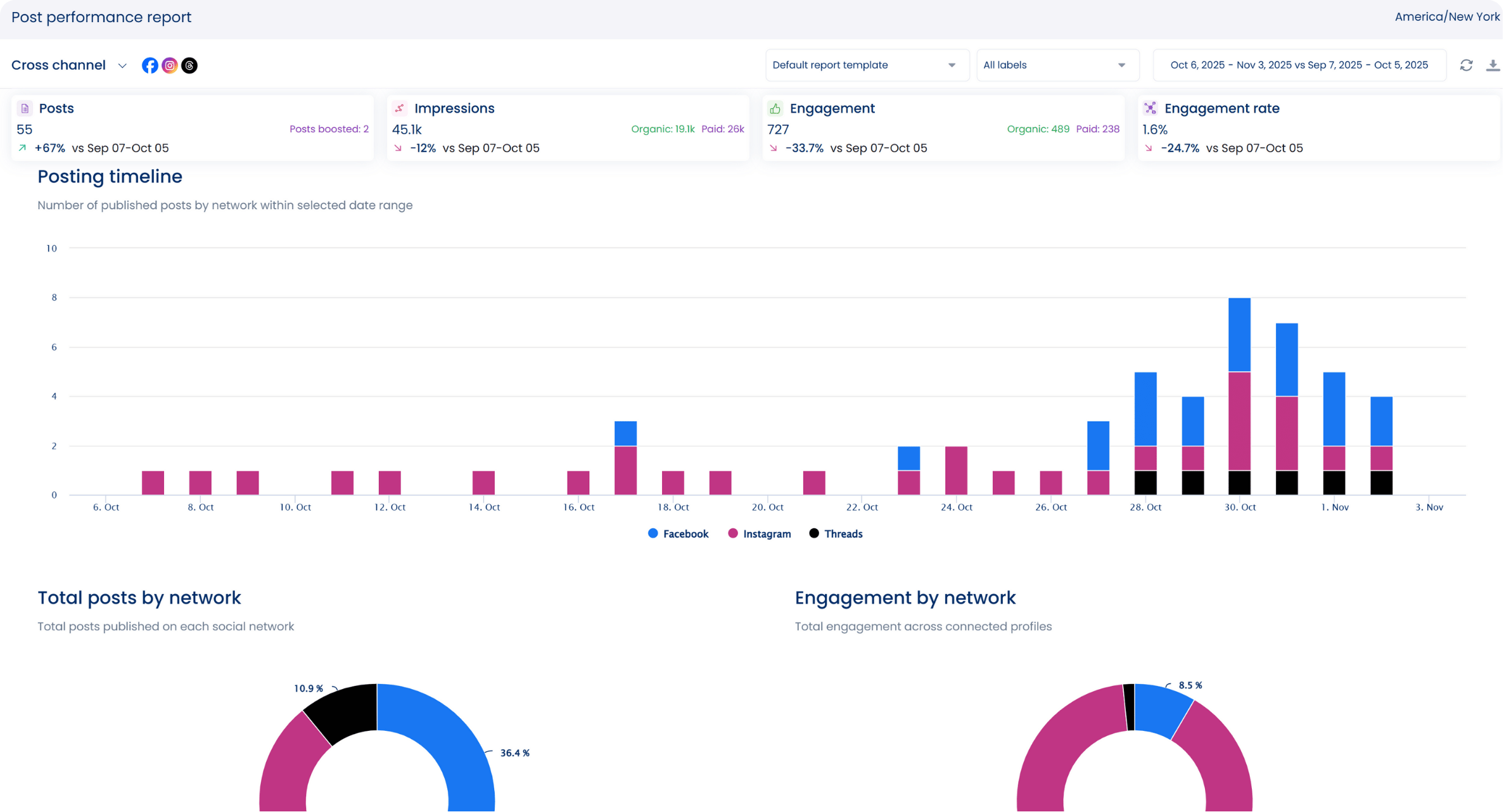 Once you’ve created and customized the post, set an auto-publishing schedule or choose from Vista Social’s engagement data-based recommended optimal posting times. Track and analyze whether your clients’ social media posts drive engagement with the platform’s social media analytics and reports.