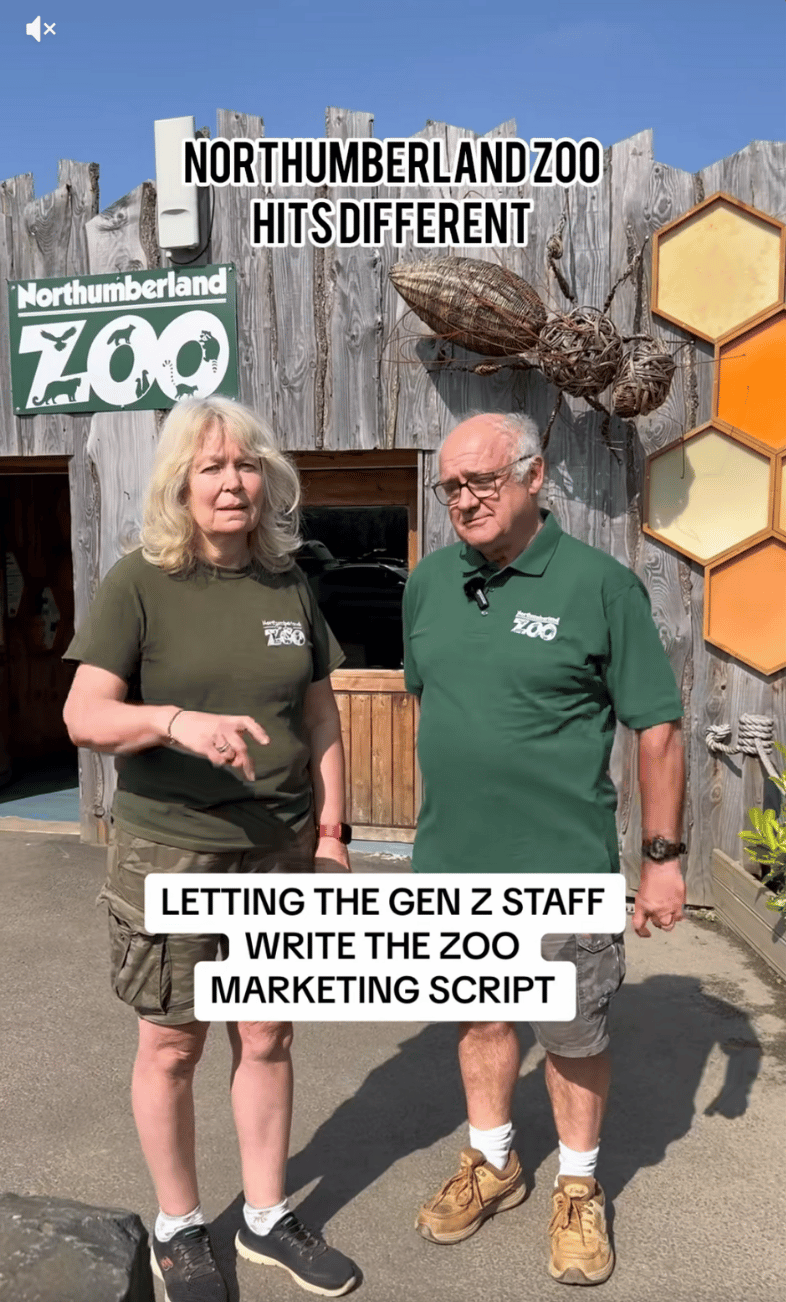 Jump into popular short-form video trends such as the Gen Z takeover. The TikTok video below from Northumberland Zoo, where they let Gen Z staff write their marketing script, is a classic example.