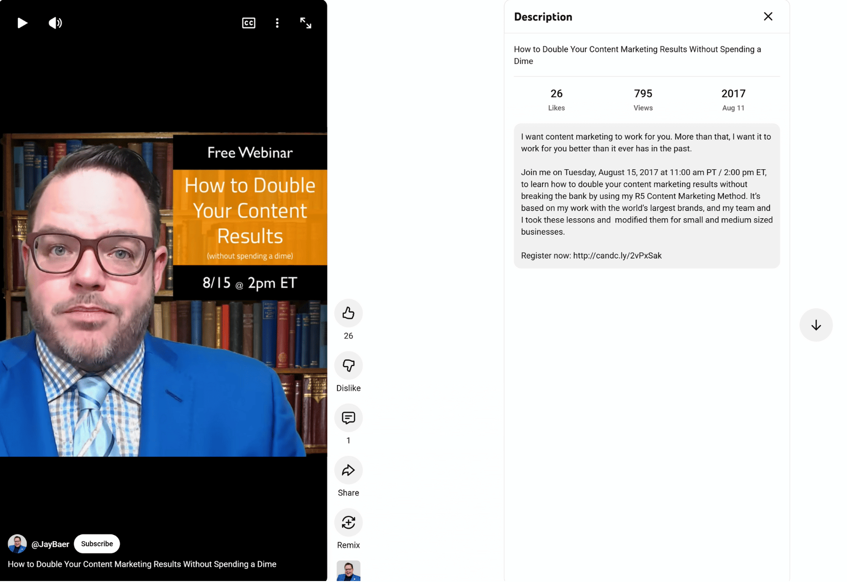 One example is global business strategist and serial entrepreneur Jay Baer’s webinar announcement on YouTube Shorts.