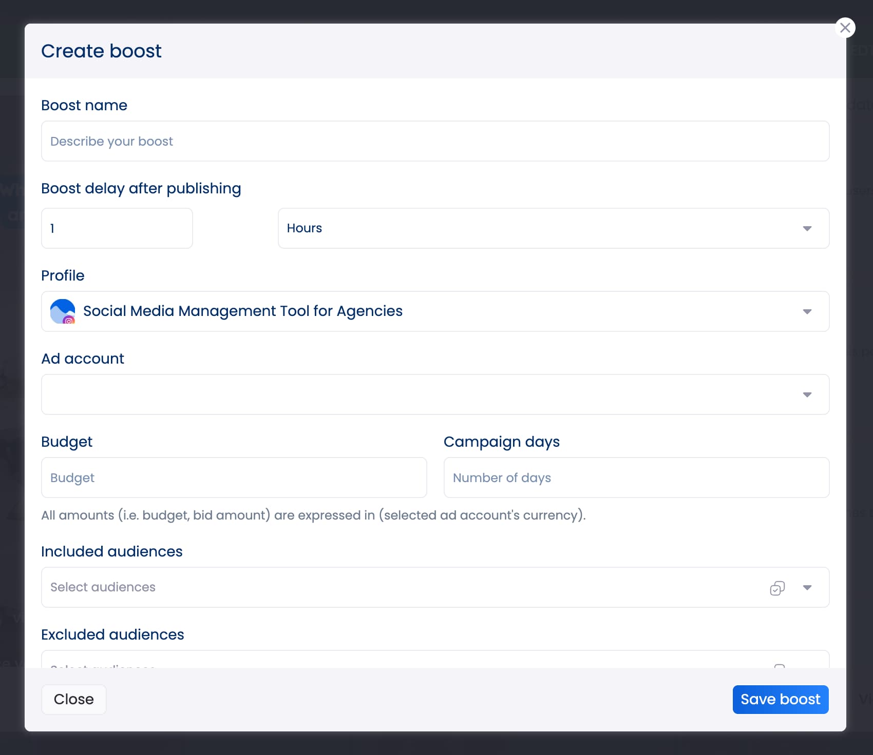 - Your boosted post budget