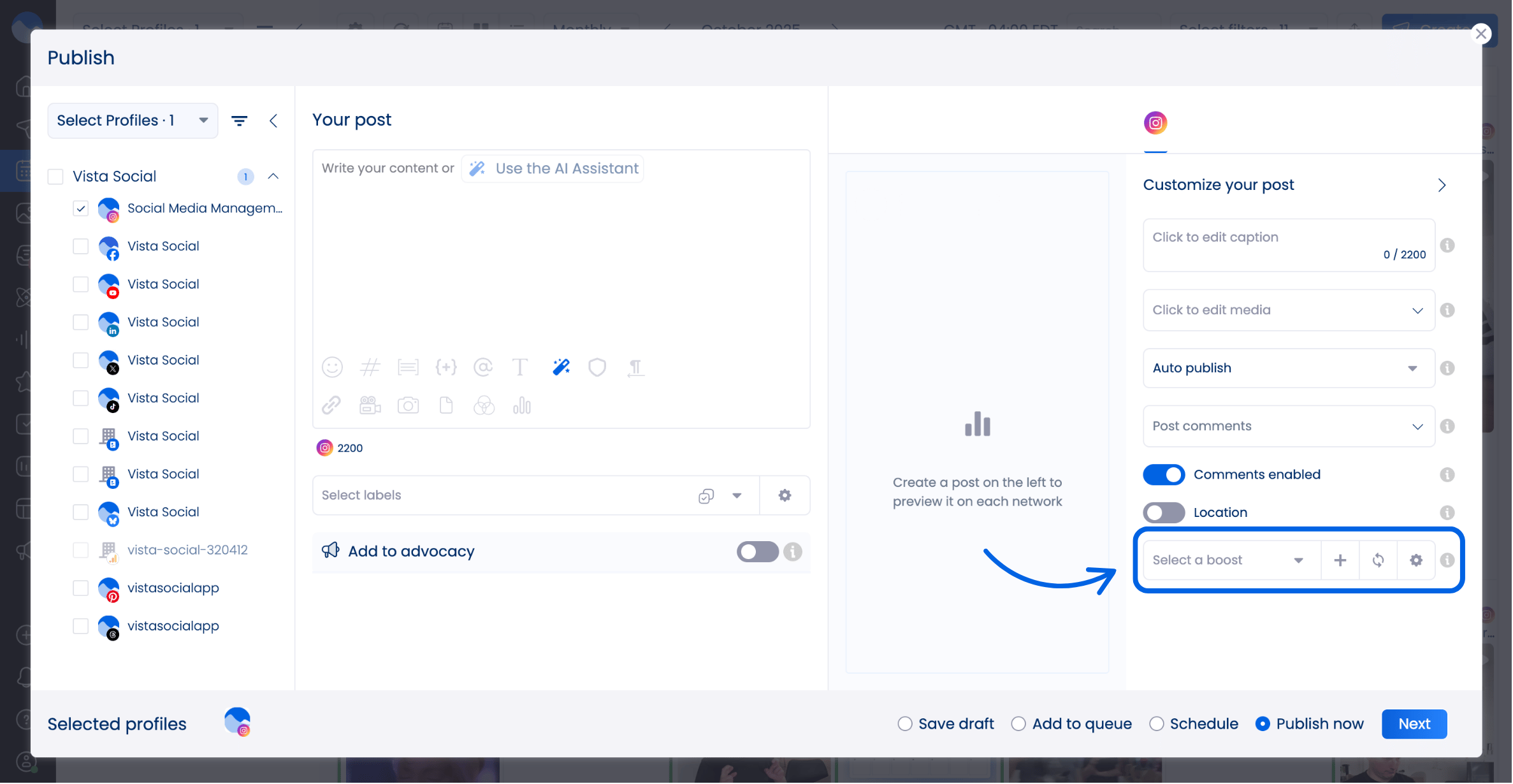 How to boost an Instagram Reel using Vista Social