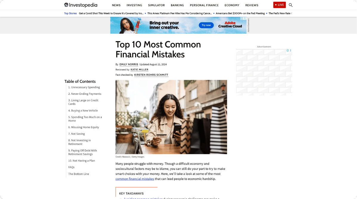 3. Investopedia’s “Top 10 Most Common Financial Mistakes”