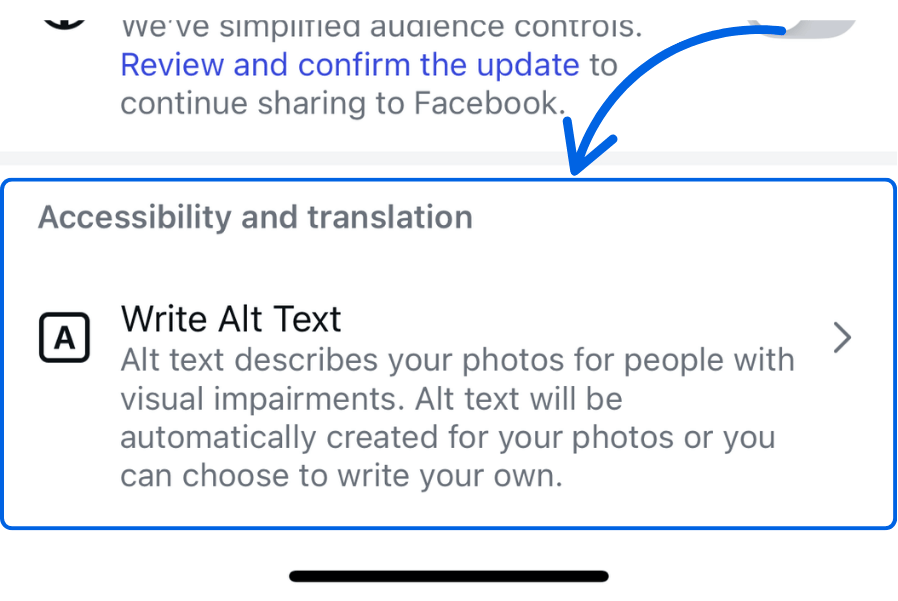 Write clear alt text that explains what’s in your image. Include relevant keywords naturally but focus on being helpful, not stuffing in keywords. To add alt text, scroll down to tap More options as you create an Instagram post. Scroll down again to find the Write Alt Text option.