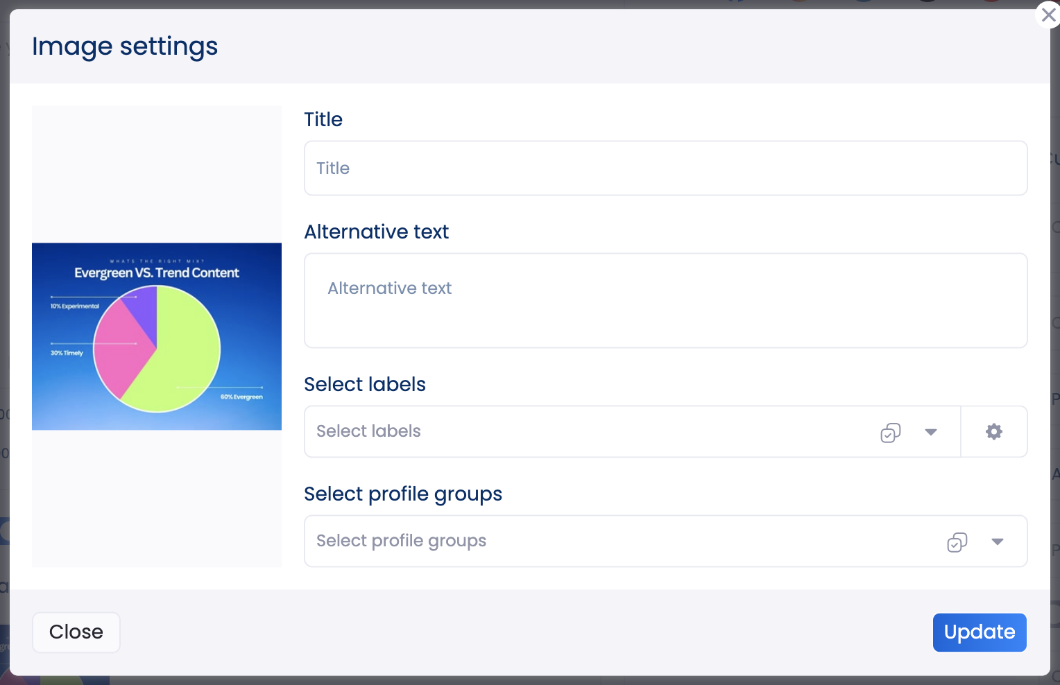 You can also add alt text using a third-party posting tool like Vista Social. Upload your image, then go to the image settings so you can type in “Alternative text” to describe your image.