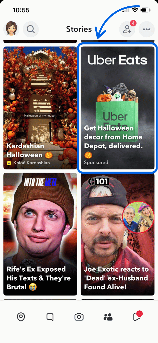 Story Ads appear as branded tiles in the Discover feed. When users tap your tile, they see a series of 3-20 Snaps that tell a more comprehensive story about your product, service, or brand. These work well for product launches, tutorials, or showcasing multiple items.