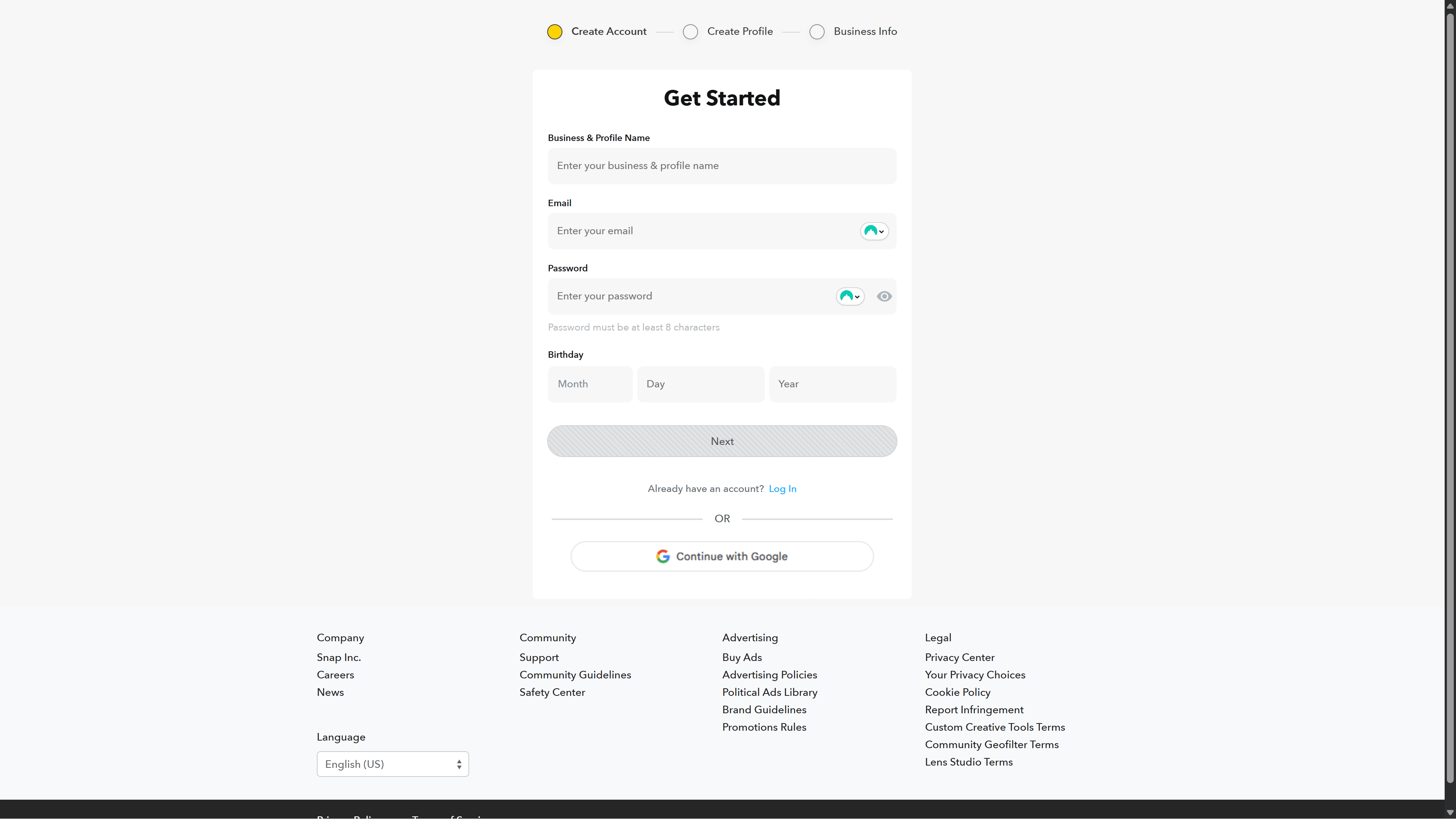 Simply go to the Snapchat for business website and create a new account. You can also login with your existing Snapchat details. Just remember that this is a separate website from the one we use to contact friends and check out content.