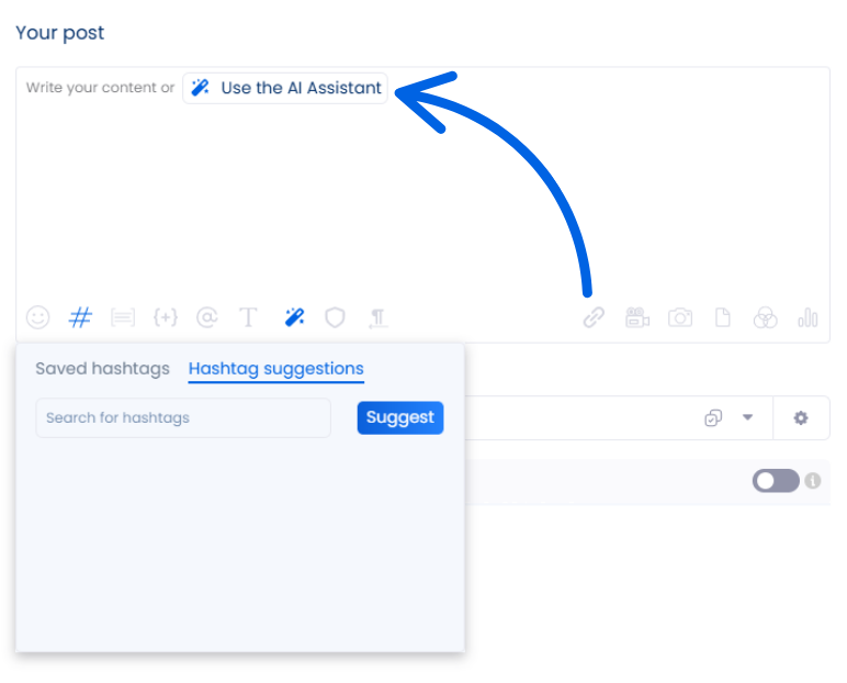 Vista Social streamlines Instagram caption creation with built-in tools like the AI Assistant, our hashtag suggestions, and scheduling capabilities.
