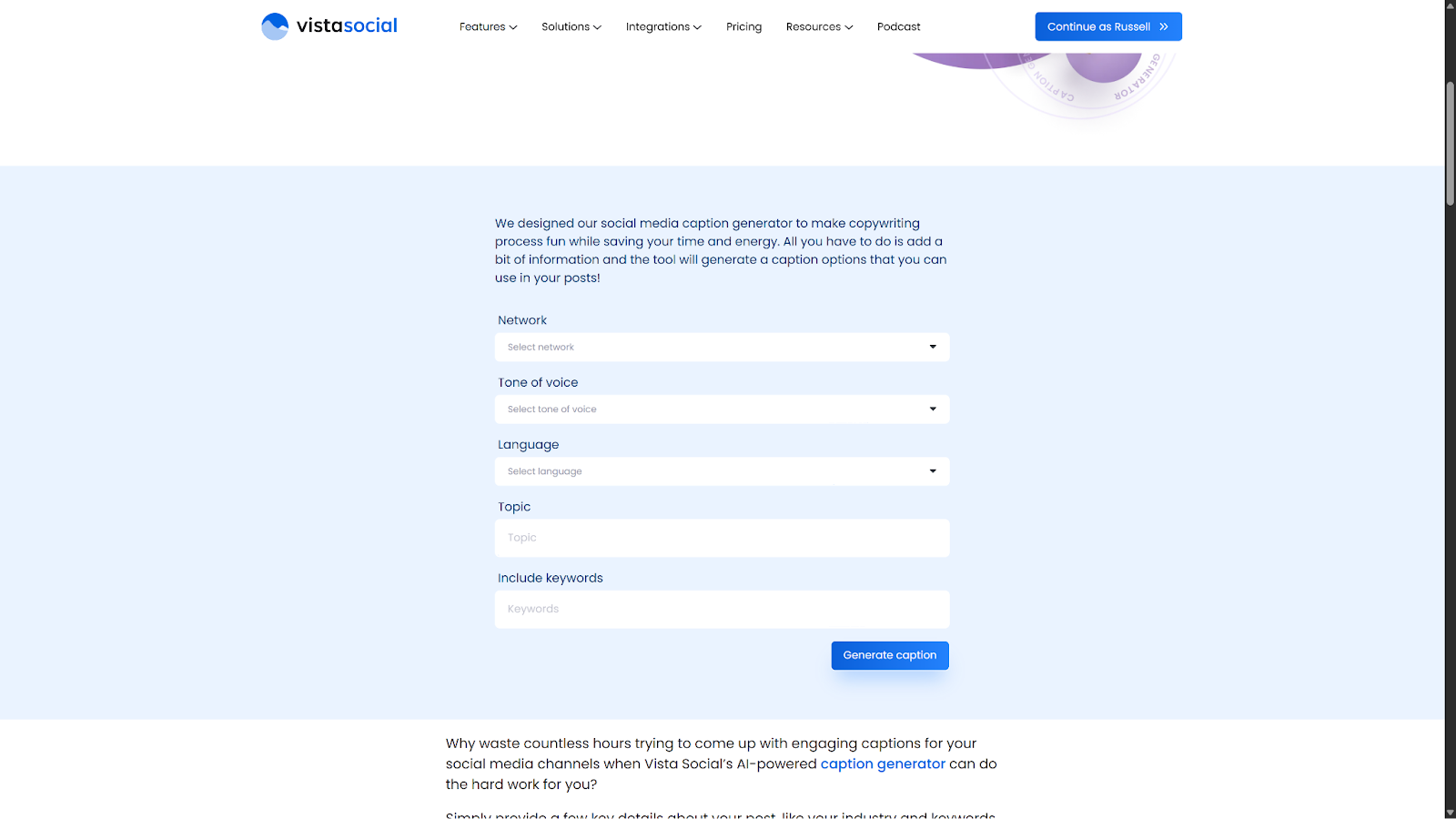 Vista Social’s free caption generator gives instant caption suggestions across all major platforms. The tool considers platform-specific best practices and audience behavior patterns.