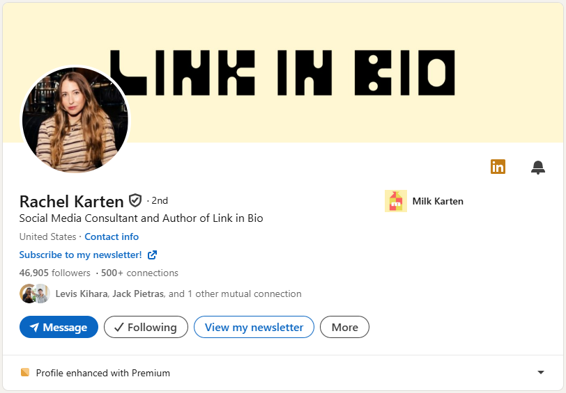 Rachel keeps it simple by stating her role and her well-known newsletter. When you have a recognized brand or publication, sometimes the straightforward approach works best. Her newsletter has strong industry recognition, so she doesn’t need additional explanation.