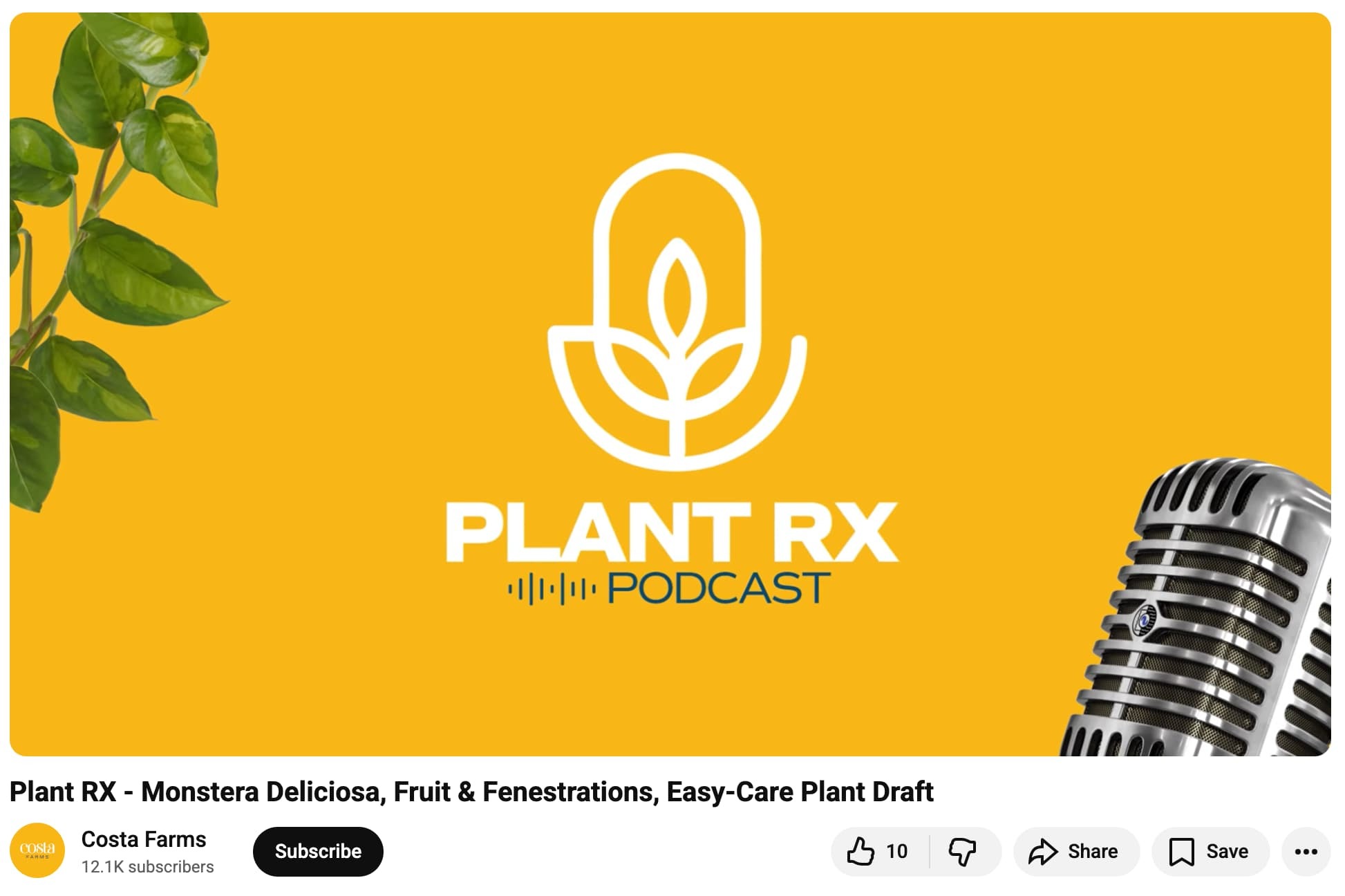 - Content example: Plant brand Costa Farms shares plant information, care tips, and more in its video podcast content.