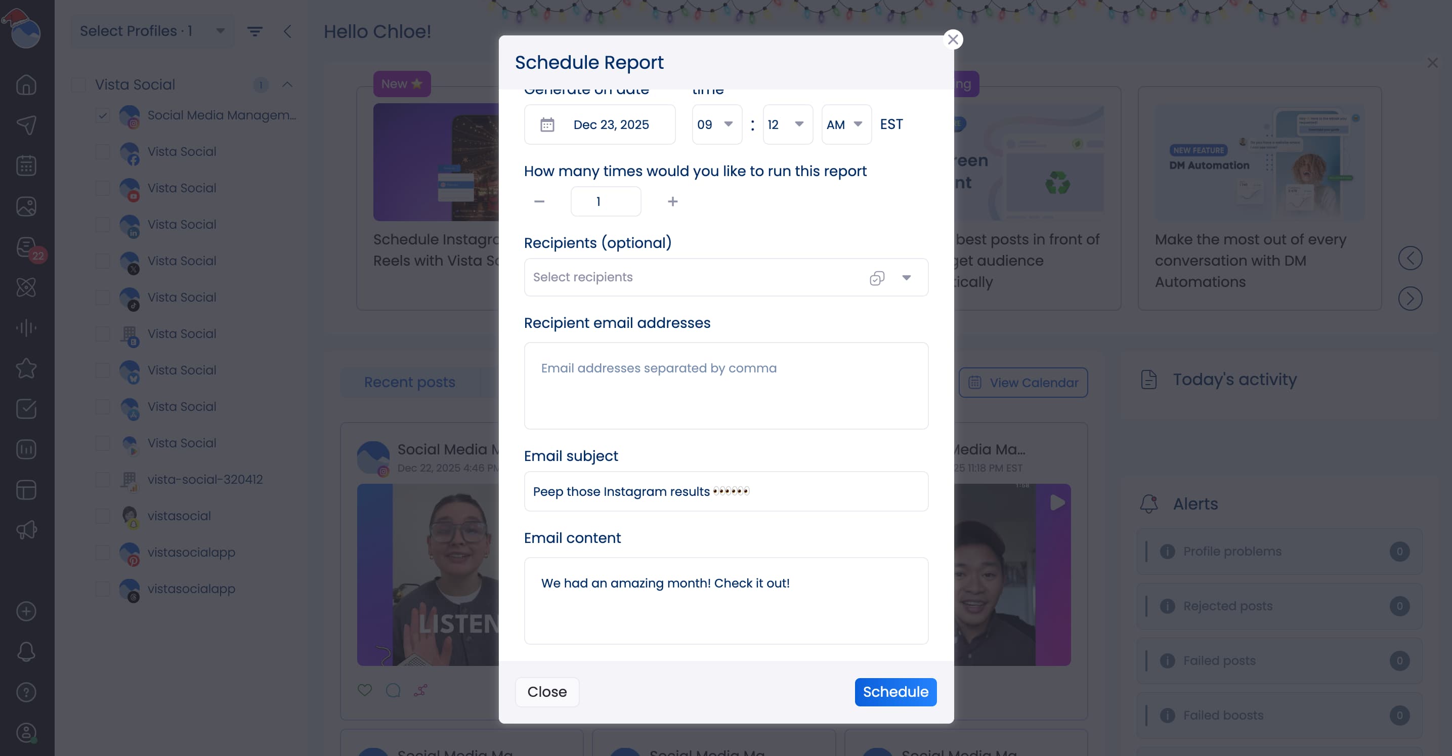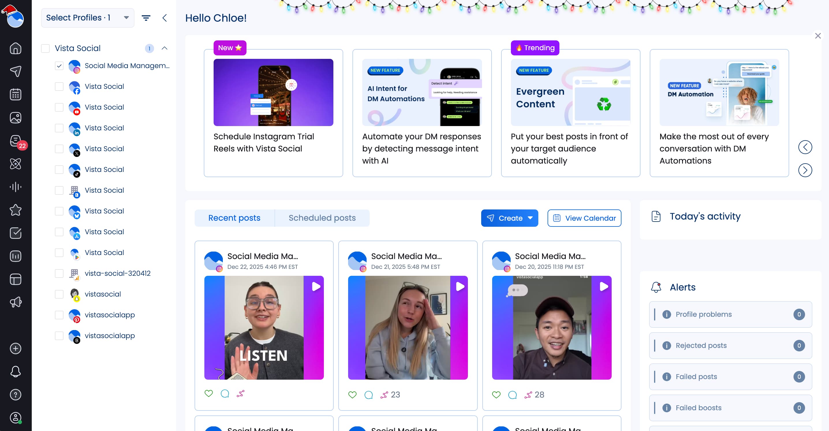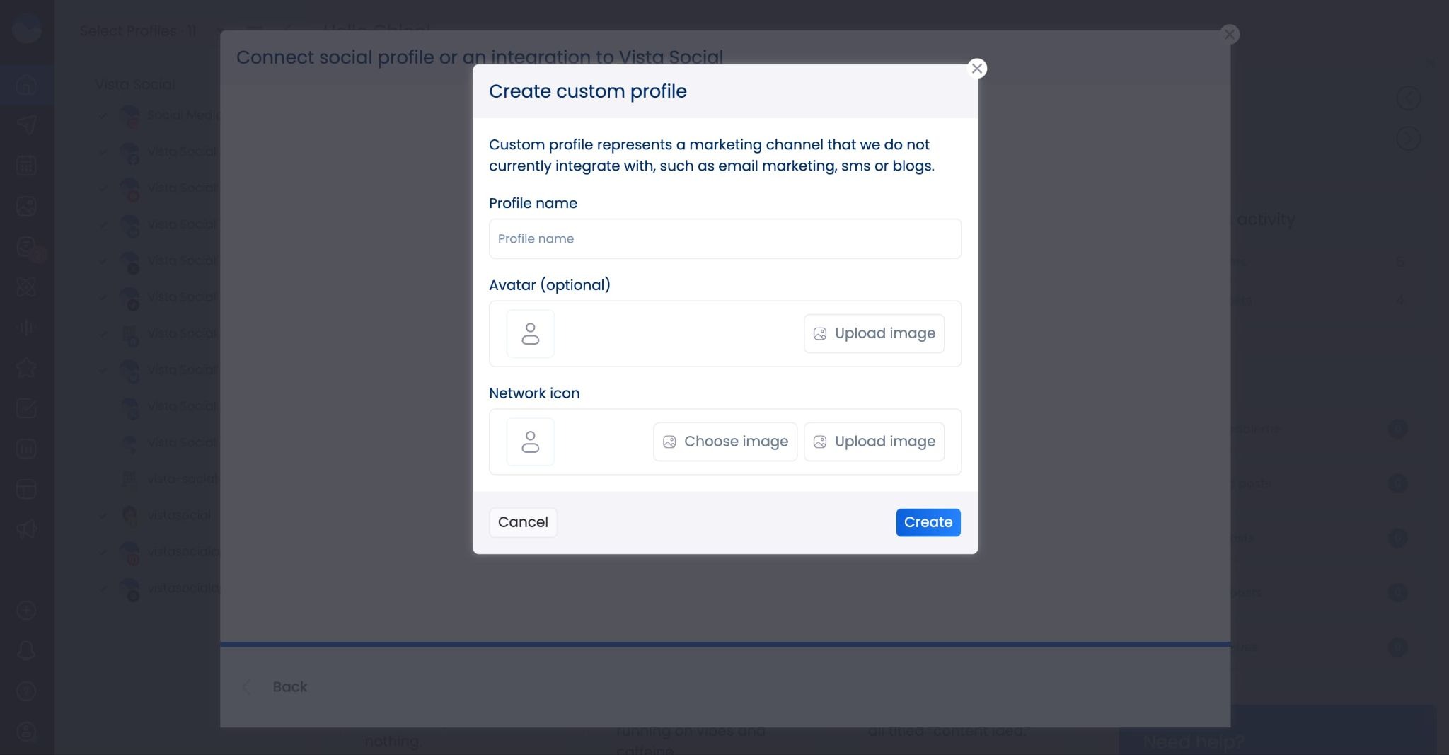 - New custom channels feature: Connect more than just social media profiles to Vista Social! Add your blog, email, podcast, and more so you can put all of your content in one easy-to-follow calendar.