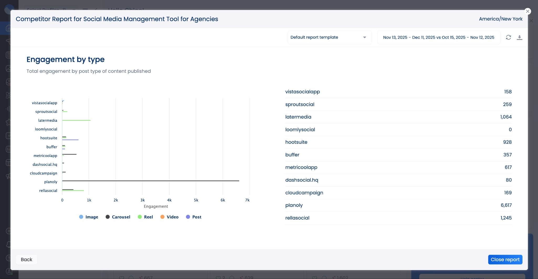 - New competitor analysis report widget: We added a brand new widget to the competitor analysis reports, giving you insights into engagement by post type across all of your competitor content.