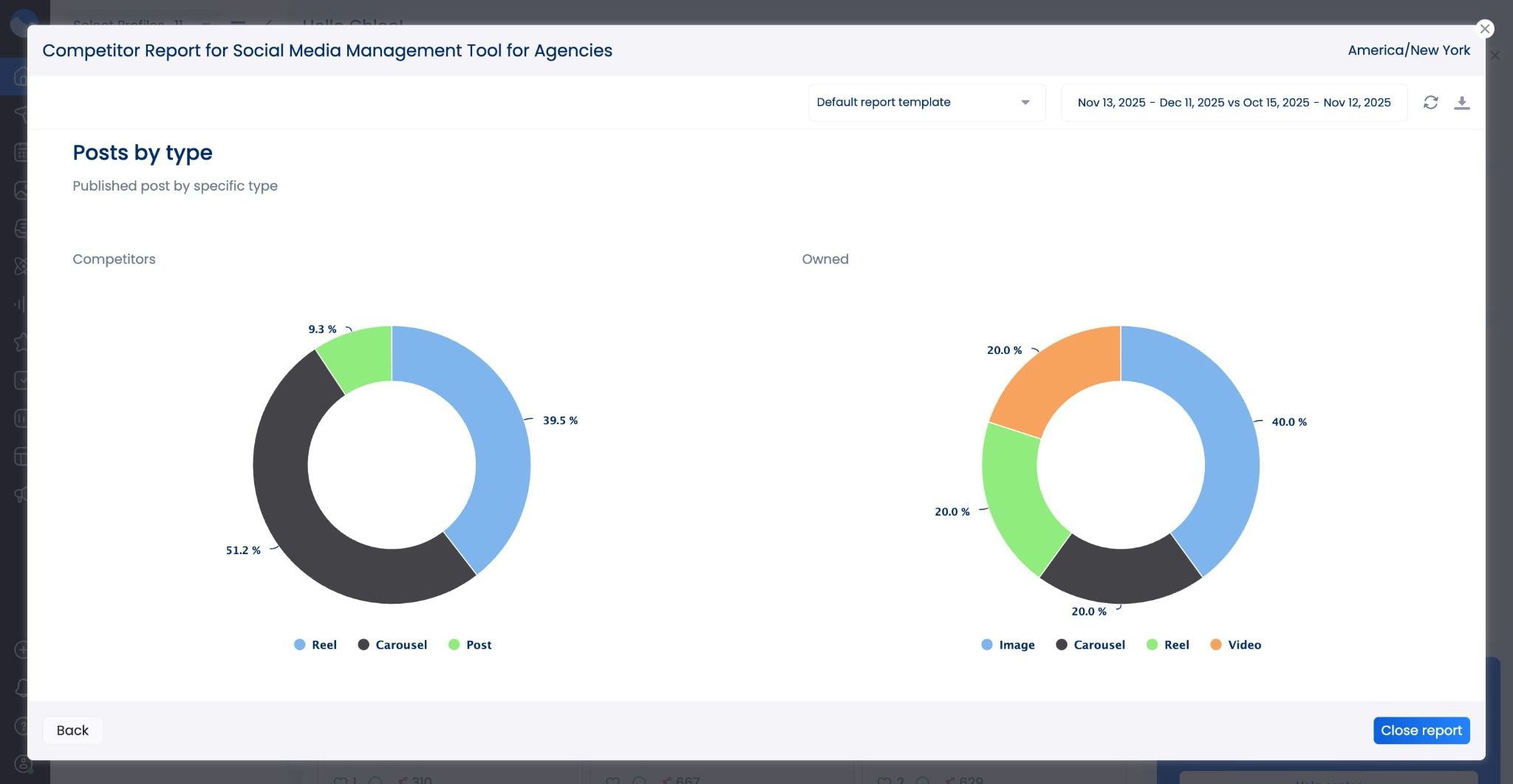 - New competitor analysis report widget: We added yet another widget to your competitor analysis reports, this time giving you the option to view posts by type. This gives you insight into the different post formats your competitors are using.